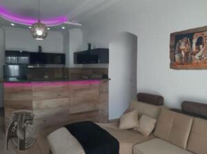 Apartmán se může pochlubit dobře navrženým interiérem, který efektivně využívá dostupný prostor pro bydlení a relaxaci. Vybavení apartmánu zahrnuje moderní kuchyňský kout, kvalitní nábytek a elegantní koupelnu, která splní očekávání i těch nejnáročnějších klientů.