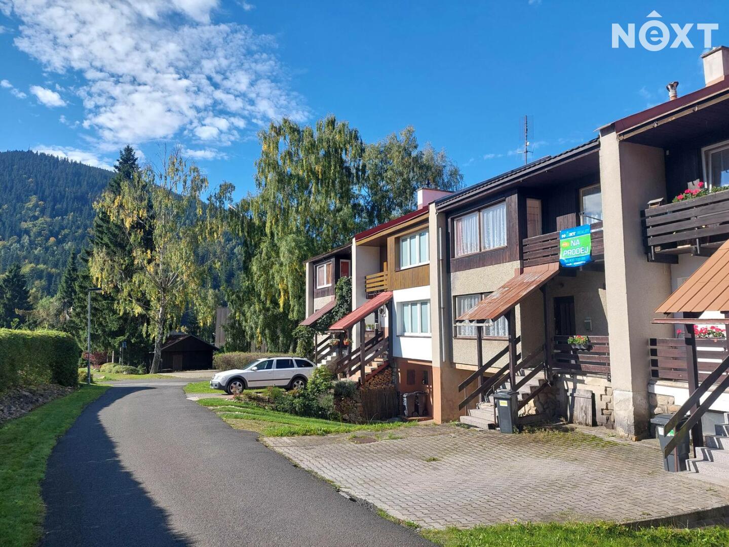 Nabízíme exkluzivně k prodeji řadový rodinný dům na jedinečném místě v Harrachově s výhledem na skokanské můstky a sjezdovku na Čertovu horu. Dům se nachází v klidné vilové části v blízkosti lesa. Jedná se o řadový dům se zahradou. V suterénu je garáž, sklad, prádelna a dílna. Ze suterénu je možné vybudovat malou bytovou jednotku se vstupem na zahradu. V přízemí domu se nachází prostorný obývací pokoj, kuchyně s jídelním koutem z kterého vede vstup na balkon. V tomto patře se nachází vstup do domu s předsíní, šatna a WC. V patře domu jsou tři pokoje s 2 balkony a koupelna s vanou a WC, menší kuchyňka pro hosty. Možnost oddělení od přízemí a vybudování další bytové jednotky. Je zde také prostorná půda sloužící jako úložné prostory. Vhodné na bydlení pro početnou rodinu, či vybudování až tří bytových jednotek k pronájmu. Parkování přímo u domu. Pro komunikaci uvádějte evidenční číslo zakázky N102578.