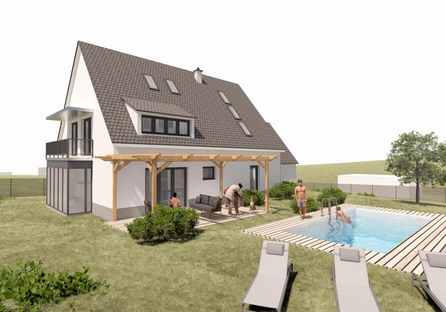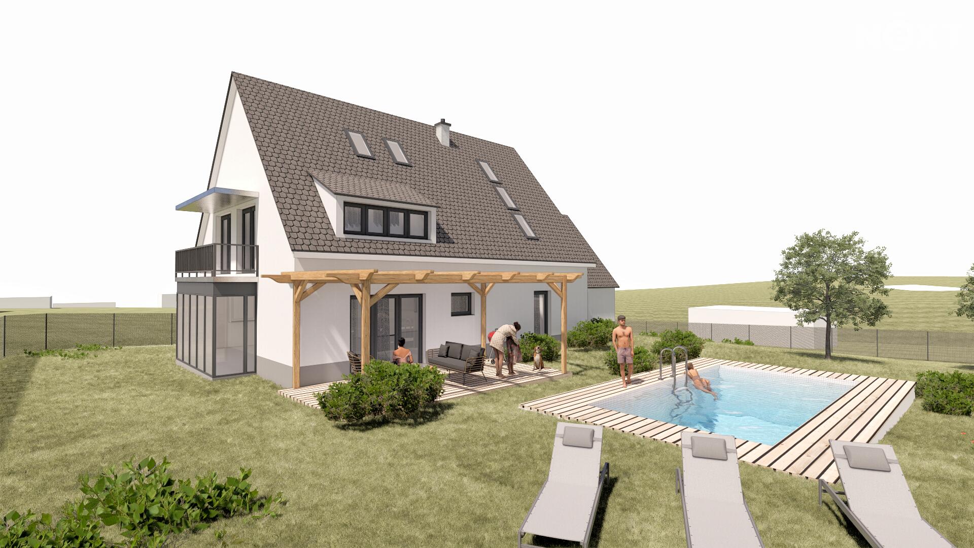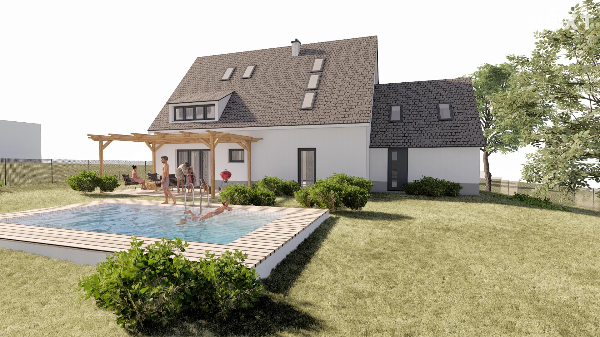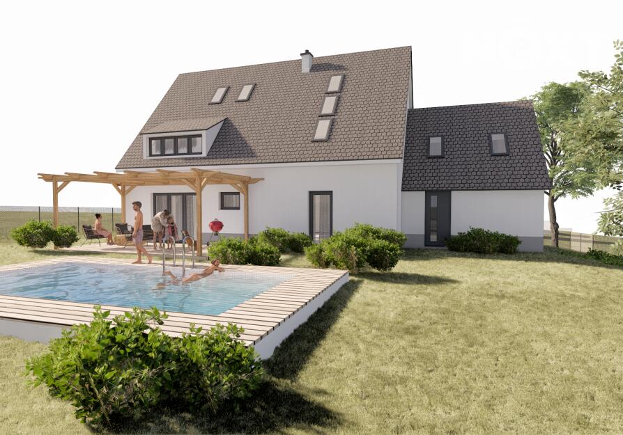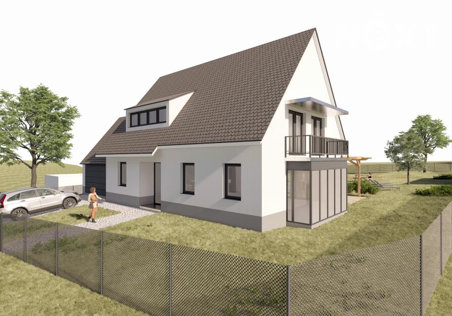 Velkou výhodou je již vyřízené stavební povolení na výstavbu dvoupodlažního rodinného domu s garáží o dispozici 6+kk. Odpadne vám tak zásadní aktivita před samotnou stavbou, a to je administrativa. Pro vážné zájemce je k nahlédnutí projektová dokumentace, podle které jsme pro lepší představu připravili vizualizaci budoucího stavu včetně situace na pozemku.
