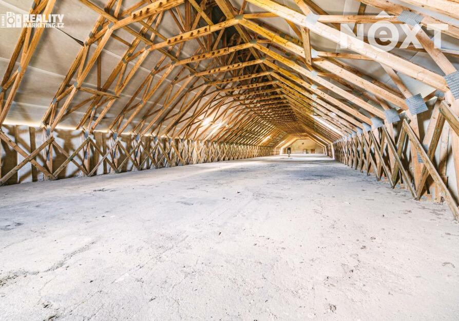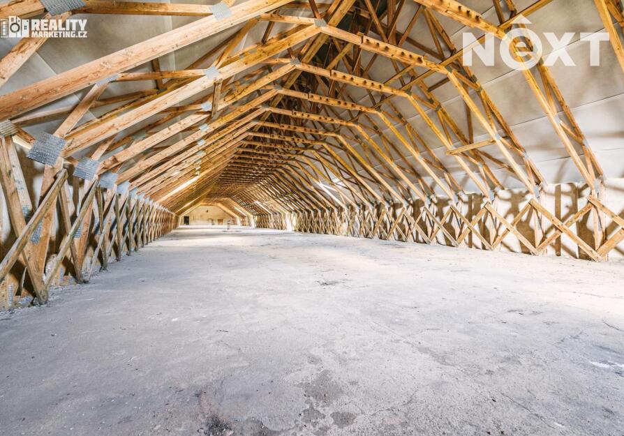 Potenciál objektu má velmi široké využití, a to nejen ke skladování, ale také například k zemědělské činnosti, lehké výrobě či různých typů servisů. Obdélníková stavba (cca 78,5 x 11,5 m2) je zděná z pálených cihel, stropy jsou betonové. V roce 2005 byla realizována kompletně nová střecha, vyměněny byly i okna. Budova se skládá z několika na sebe navazujících, uzamykatelných částí, k dispozici je i zázemí se sociálním zařízením, ve stavu vhodným k rekonstrukci. Část nemovitosti je zabezpečena bezpečnostním systémem.