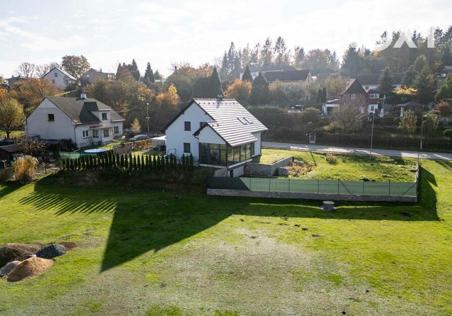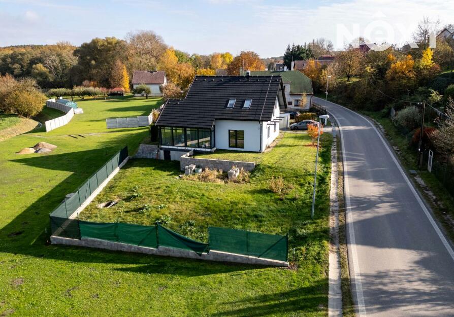 Pod zimní zahradou se nachází sklep, vhodný pro uskladnění vína či sezónních věcí. Zahrada nabízí dostatek prostoru pro bazén, zahradní domek či garážové stání. Příjezd je po zpevněné obecní komunikaci, parkování možné přímo na pozemku.