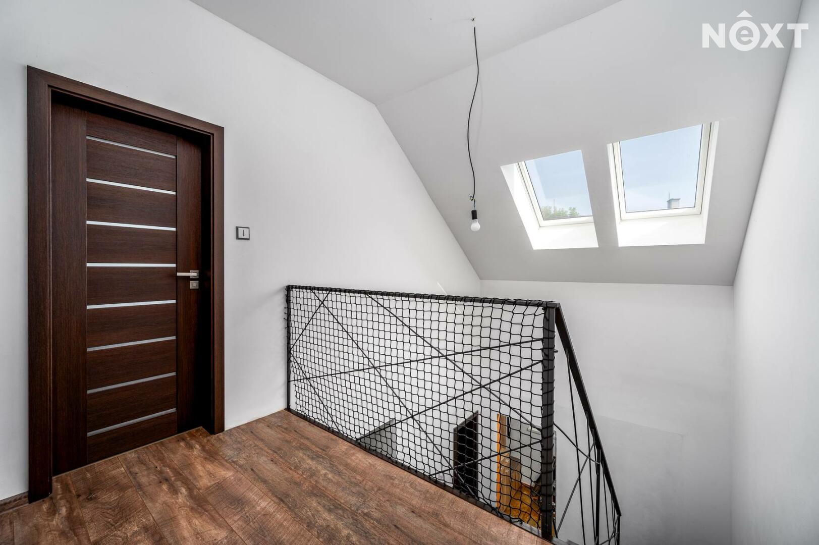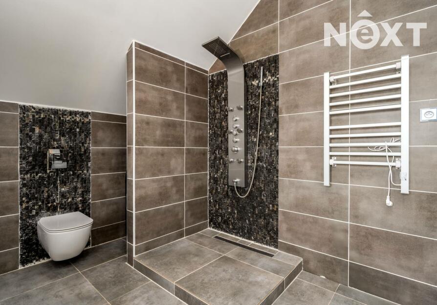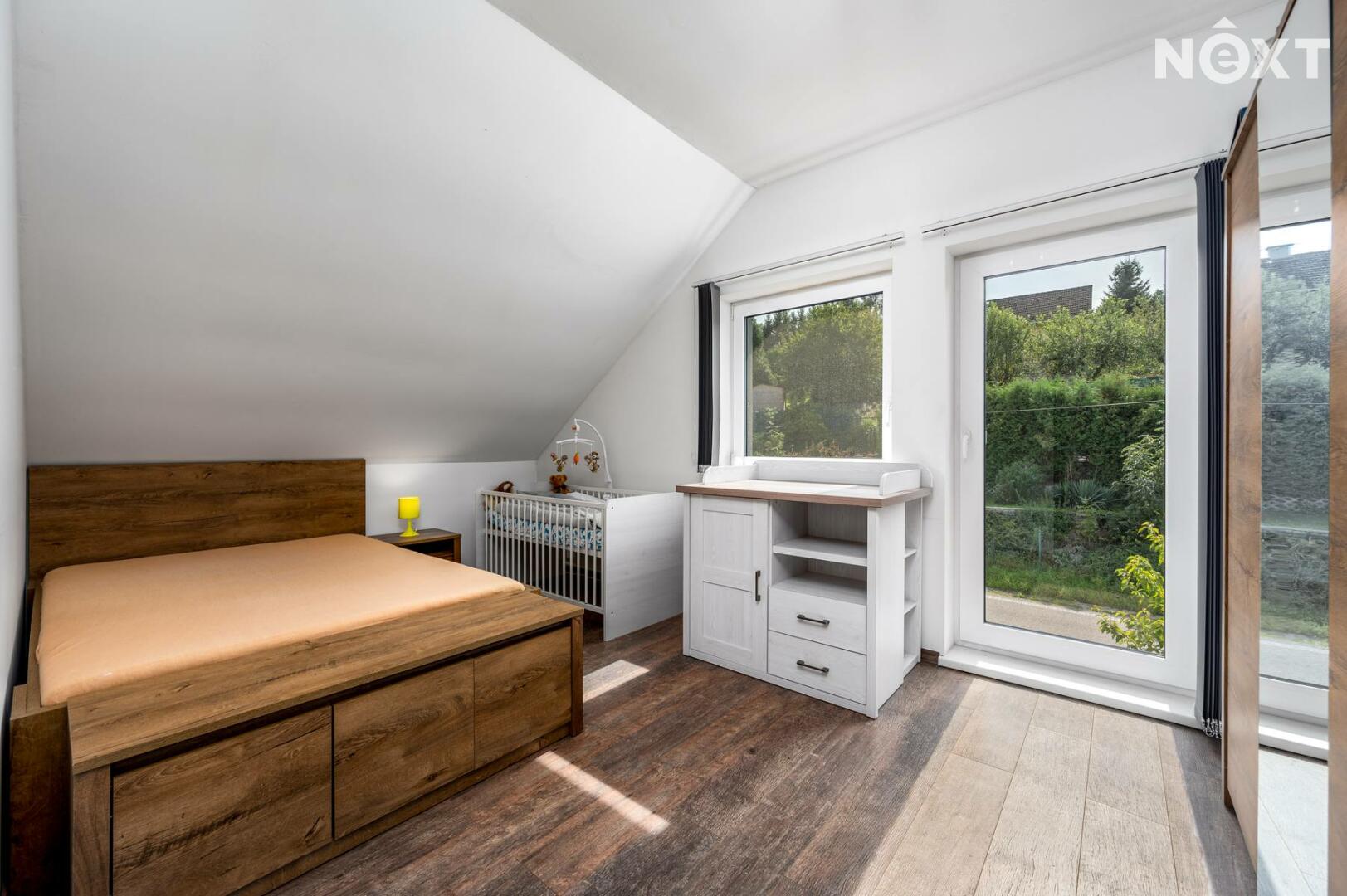 V patře se nachází tři ložnice, koupelna s vanou, sprchovým koutem a toaletou. Ze dvou pokojů je připraven výstup na balkon (nosná konstrukce je již hotová).