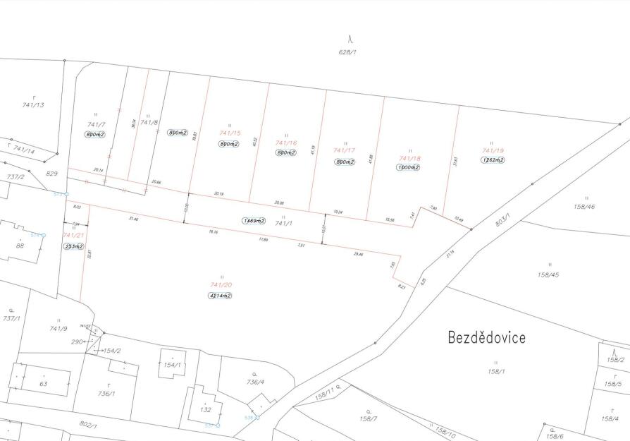 Nabízíme Vám ke koupi stavební pozemek o celkové výměře 800 m², který se nachází v obci Bezdědovice nedaleko Blatné, přímo vedle stávající zástavby rodinných domů (pozemky 741/15, 741/16, 741/17, 741/18). Díky své poloze nabízí pozemek příjemné a klidné prostředí s těsnou blízkostí lesa a pohodlným přístupem na komunikaci. Pozemek je územním plánem určen pro výstavbu rodinného domu (plocha smíšená obytná – SO). Hlavní využití je bydlení v rodinných domech, přípustné využití pak zahrnuje nízkopodlažní budovy, bytové domy a stavby pro rodinnou rekreaci. Parcela disponuje maximální zastavitelností 40 % plochy a umožňuje výstavbu do výšky 2 nadzemních podlaží včetně podkroví. Podmínkou výstavby je odstup minimálně 3,5 m od hranice lesa i od sousedních staveb (tato vzdálenost platí i pro oplocení). Na objektech jsou povoleny sedlové nebo valbové střechy se sklonem minimálně 30. V současnosti je již podána přihláška na připojení k elektrické síti. Obec nemá plánovanou výstavbu kanalizace, proto je nutné odpadní vody řešit vlastní domovní ČOV. Ke každému pozemku bude přivedena vodovodní přípojka (šachta) na náklady prodávajícího. Ideální příležitost pro klidné bydlení v blízkosti přírody a s výbornou dostupností do nedaleké Blatné. Pro bližší informace nebo prohlídku nás neváhejte kontaktovat. Pro komunikaci uvádějte evidenční číslo zakázky N107597.