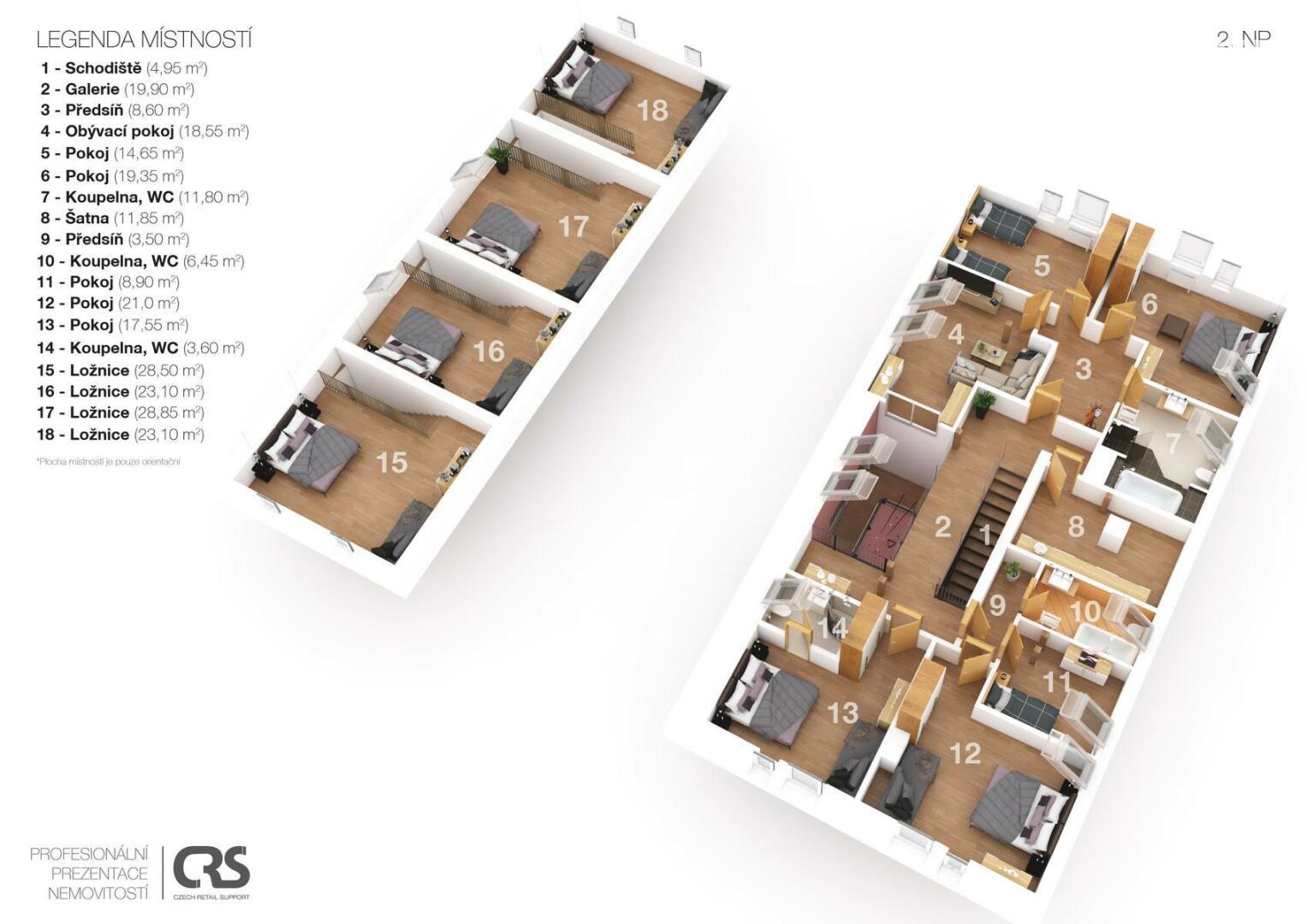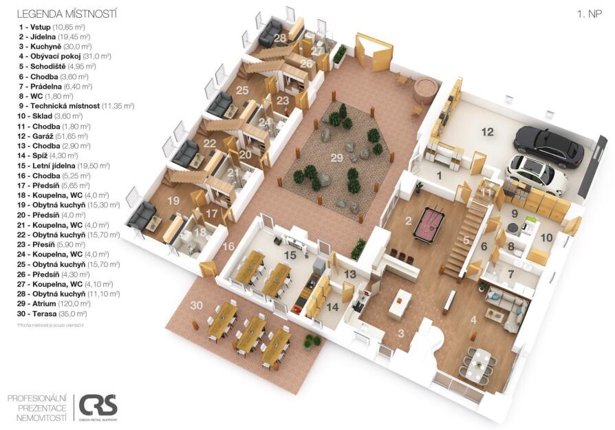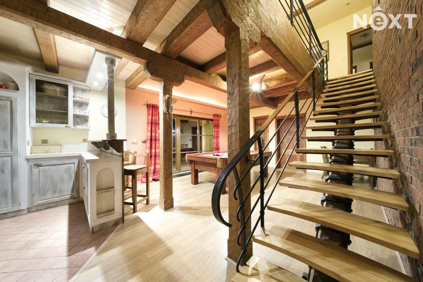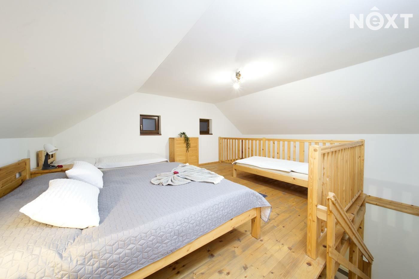 Exkluzivně nabízíme zprostředkování prodej rodinného penzionu v jižních Čechách v obci Zdešov. Celý komplex byl vybudován a je v provozu od roku 2010. V hlavní budově se nacházejí tři prostorné apartmány se sociálním zařízením s kapacitou 12 lůžek, v přízemí budovy je společenská místnost a kuchyně s krbem a kachlovými kamny. V přízemí je také technické zázemí penzionu a prostorná garáž. Ve vedlejší budově, kam je přístup přes otevřený vnitroblok se nacházejí další čtyři apartmány s vlastním sociálním zařízením a kuchyňským koutem o celkové kapacitě 16 lůžek. Obě budovy jsou propojeny stavbou, která uzavírá vnitroblok a kde se nachází letní kuchyň s krbem a zázemím se vstupem na jižně orientovanou zahradu. V zahradě se nacházejí dva bungalovy, každý o užitné ploše cca 45m2, dispozici 3+KK s vlastním sociálním zařízením, kuchyňským koutem a terasou s výhledem do zahrady. Každý srub má kapacitu 4 lůžka. Celkový počet lůžek může být až 42 včetně přistýlek. Celková užitná plocha objektu je 830m2. V zahradě se nachází koupací biotop, dětské hřiště s celou řadou atrakcí, pin pong, houpačky, lanovka a celá řada dalších. Na pozemcích jsou dále vybudovány výběhy pro ovce včetně stájí, voliéry pro ptáky, výběhy pro slepice a další zvířata. Vzhledem k rozloze pozemků je toto místo ideální i pro chov koní. Celý komplex je vybudován na pozemcích o celkové rozloze 56.448m2 a další polnosti o výměře 37.475m2 se nacházejí na úpatí Němcova kopce. Vytápění penzionu je řešeno kotlem na dřevo s akumulační nádrží, v kombinaci s elektrickým vytápěním. Je připravený projekt na vybudování dalších ubytovacích kapacit včetně snídaňové restaurace a zázemí. Kapacita dalšího ubytování je plánována na min. 20 lůžek. Areál je vhodný nejen pro trávení klidné dovolené, ale také pro pořádání svateb, rodinných oslav, firemních pobytů a školení. V okolí naleznete celou řadu kulturních i přírodních zajímavostí a památek. Toto místo je ideální pro sportovní i turistické aktivity. V dojezdové vzdálenosti do 30 minut je celá řada jihočeských skvostů, jako je město Telč, Pelhřimov, Třeboň, zámek Jinřichův Hradec, Kamenice nad Lipou a celá řada dalších. Zkrátka ideální výchozí pozice pro poznávání Jižních Čech. Pro komunikaci uvádějte evidenční číslo zakázky N109324.