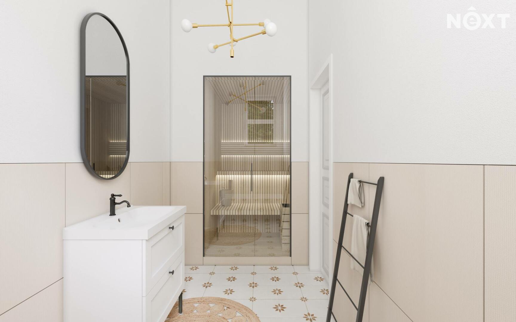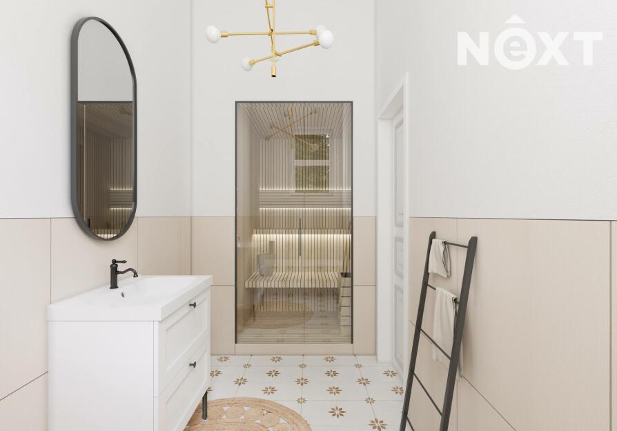 Představujeme apartmán č. 5 v unikátním Resortu Červený dvůr, který spojuje historický nádech zámku s moderním luxusem. Tento prémiový 2+kk apartmán (36 m²) ve 2. NP je jedním ze tří exkluzivních bytů s vlastní saunou.