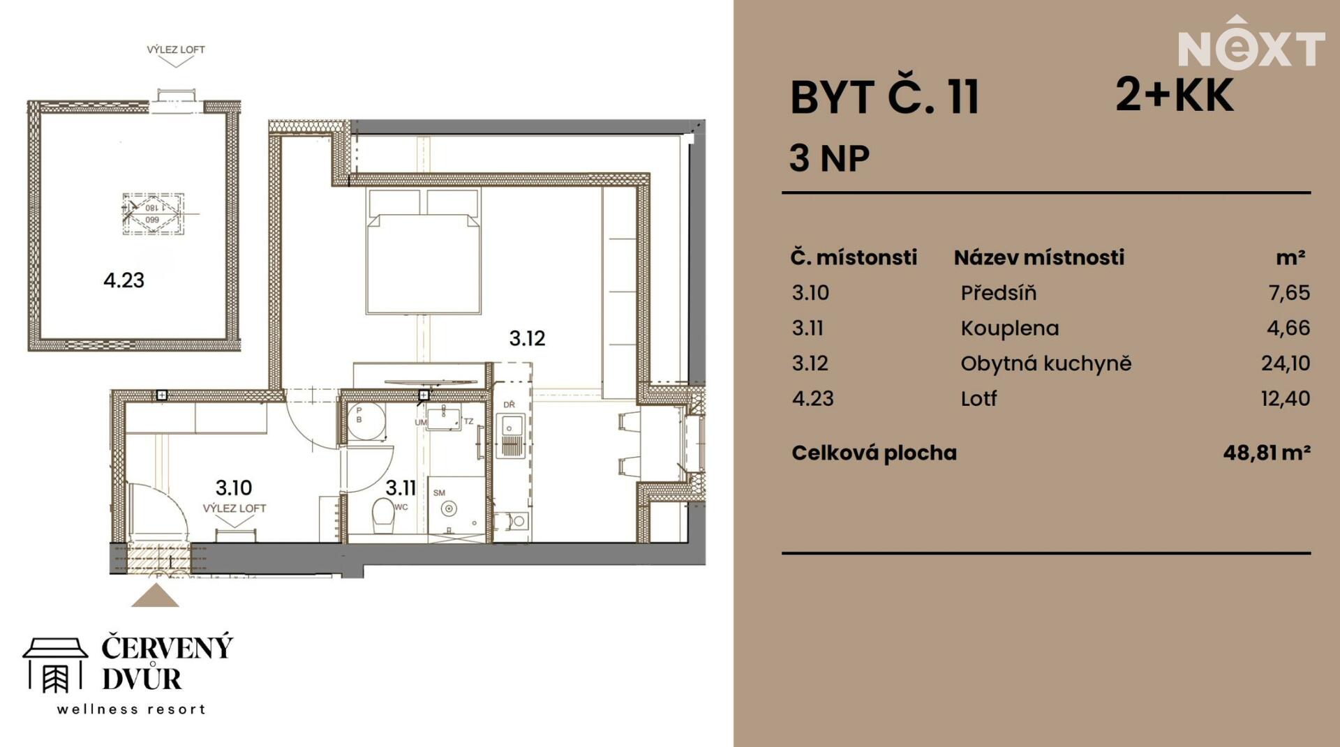 Více informací a aktuální dostupnost najdete zde: https://bit.ly/3PkXKmd. Apartmán č. 11 se nachází ve 3.NP budovy A, do které je vchod ze severovýchodní části areálu. Tento prémiový apartmán klade důraz na kvalitu a design, což z něj činí ideální volbu pro náročné investory. Jeho dispozice 2+kk včetně loftu a výměra 49 m² jsou ideální pro rodinný pobyt.