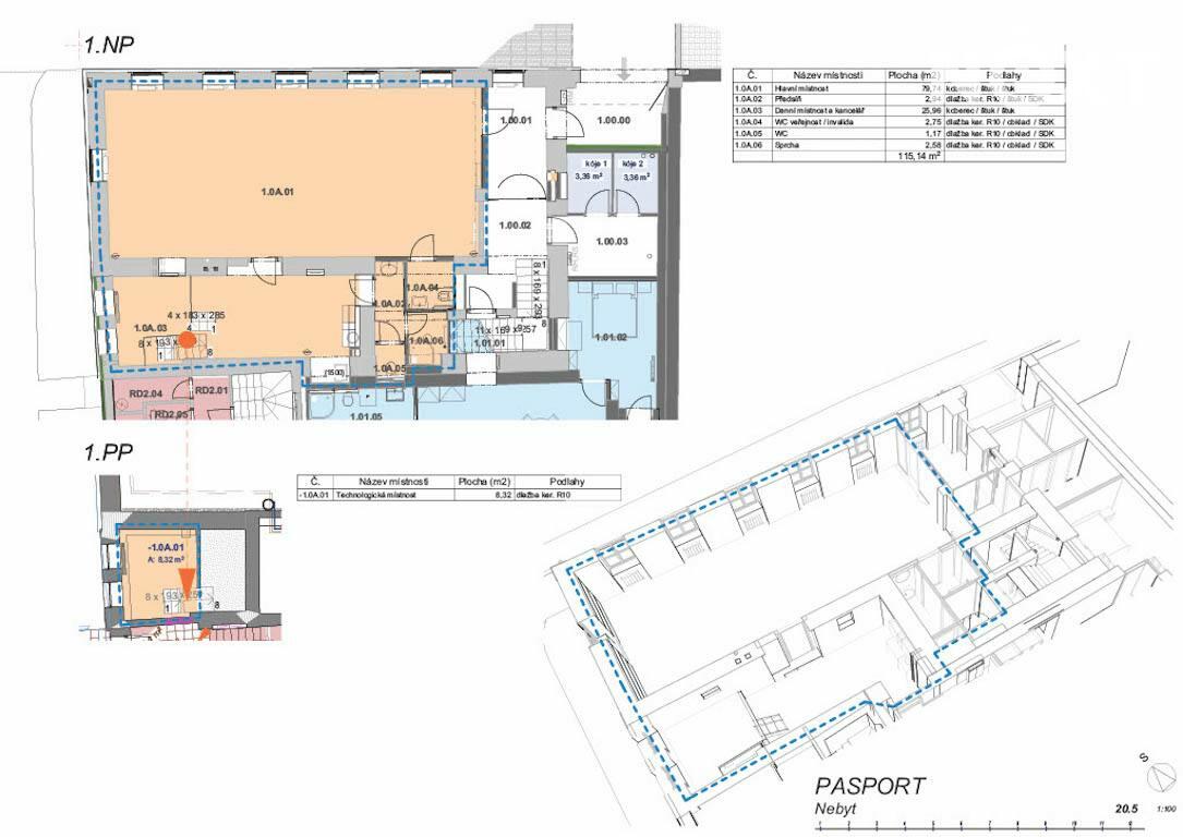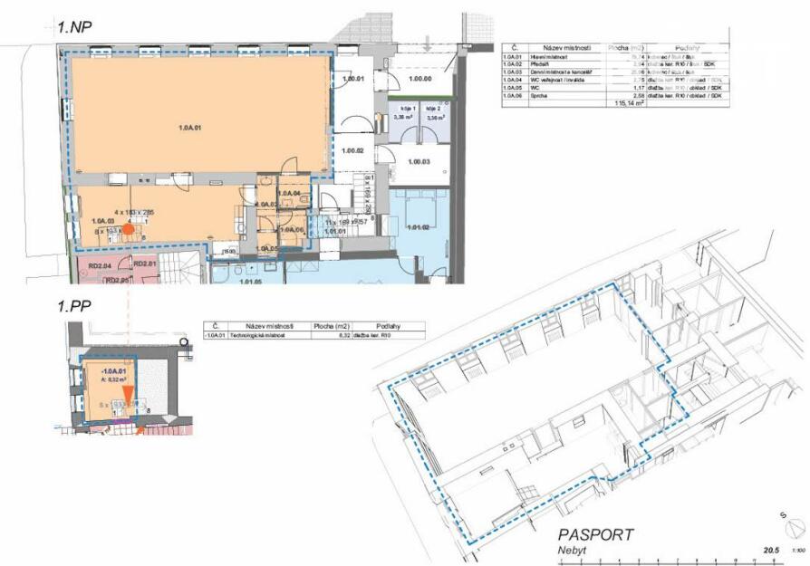 Vchod do nebytového prostoru je situován z ulice Masarykova. Užitná plocha činí 123,46 m2. Dle projektové dokumentace bude mít prostor následující podobu: 1.NP - předsíň (2,94 m2), hlavní místnost (79,74 m2), 2x WC (2,75 m2 a 1,17 m2), sprcha (2,58 m2), denní místnost a kancelář (25,96 m2). 1.PP - technologická místnost (8,32 m2). Vytápění a ohřev vody je zajištěn tepelným čerpadlem (vzduch, voda). Vstup do budovy bude bezbariérový.