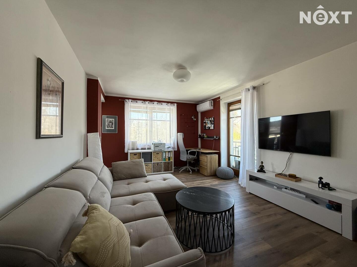 Dispozice bytu: vstupní chodba s vestavěnou skříní, obývací pokoj s kuchyňský koutem (vestavěná lednice a trouba, sklokeramická indukční deska, drtič odpadu - všechny spotřebiče Brandt), ložnice se skříní, koupelna s vanou a vlastním bojlerem, samostatné wc.