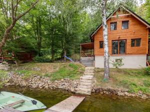 Nemovitost disponuje dvěma nadzemními podlažími a celkovou obytnou plochou vhodnou i pro vícečlennou rodinu. Interiér je řešen s důrazem na funkčnost a pohodlí – v přízemí se nachází prostorný obývací pokoj s kuchyňským koutem, pracovna, ložnice, koupelna s WC, v patře pak najdete dva dětské pokoje a místnost nachystanou na druhou koupelnu. Všechny prostory jsou světlé, vzdušné a citlivě sladěné do moderního stylu.