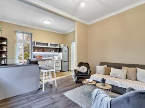 Byt vyniká svou promyšlenou dispozicí, která zajišťuje maximální využití prostoru a pocit vzdušnosti. Velká okna přinášejí do interiéru dostatek denního světla, což ještě umocňuje atmosféru otevřeného a příjemného bydlení. Moderní kuchyňská linka je součástí vybavení, takže byt je připraven k okamžitému nastěhování.