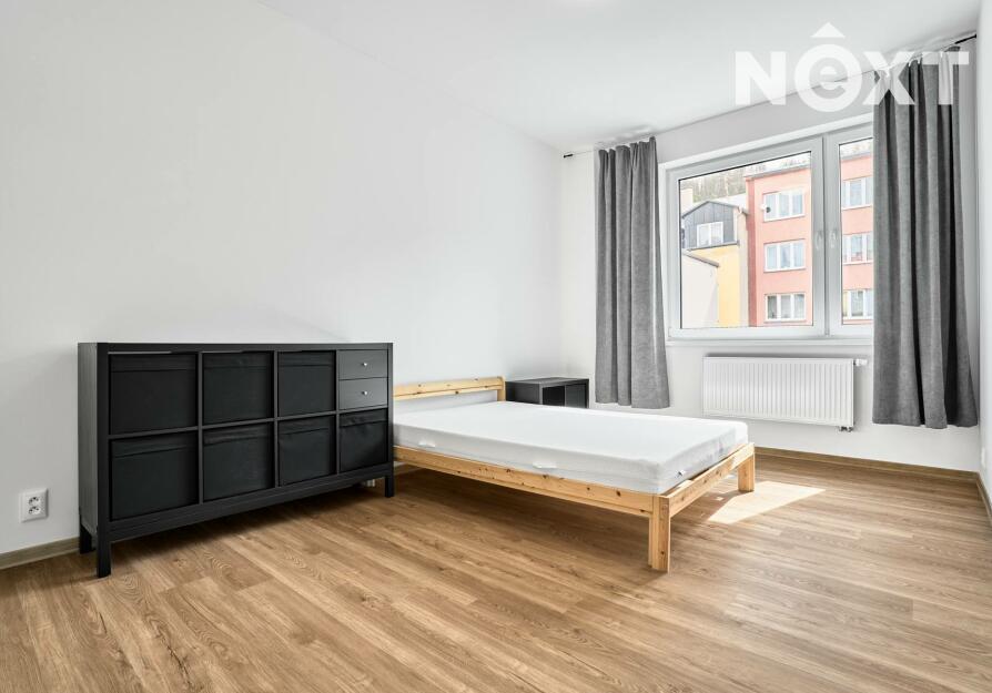 Byt vyniká svou promyšlenou dispozicí, která zajišťuje maximální využití prostoru a pocit vzdušnosti. Velká okna přinášejí do interiéru dostatek denního světla, což ještě umocňuje atmosféru otevřeného a příjemného bydlení. Moderní kuchyňská linka je součástí vybavení, takže byt je připraven k okamžitému nastěhování.
