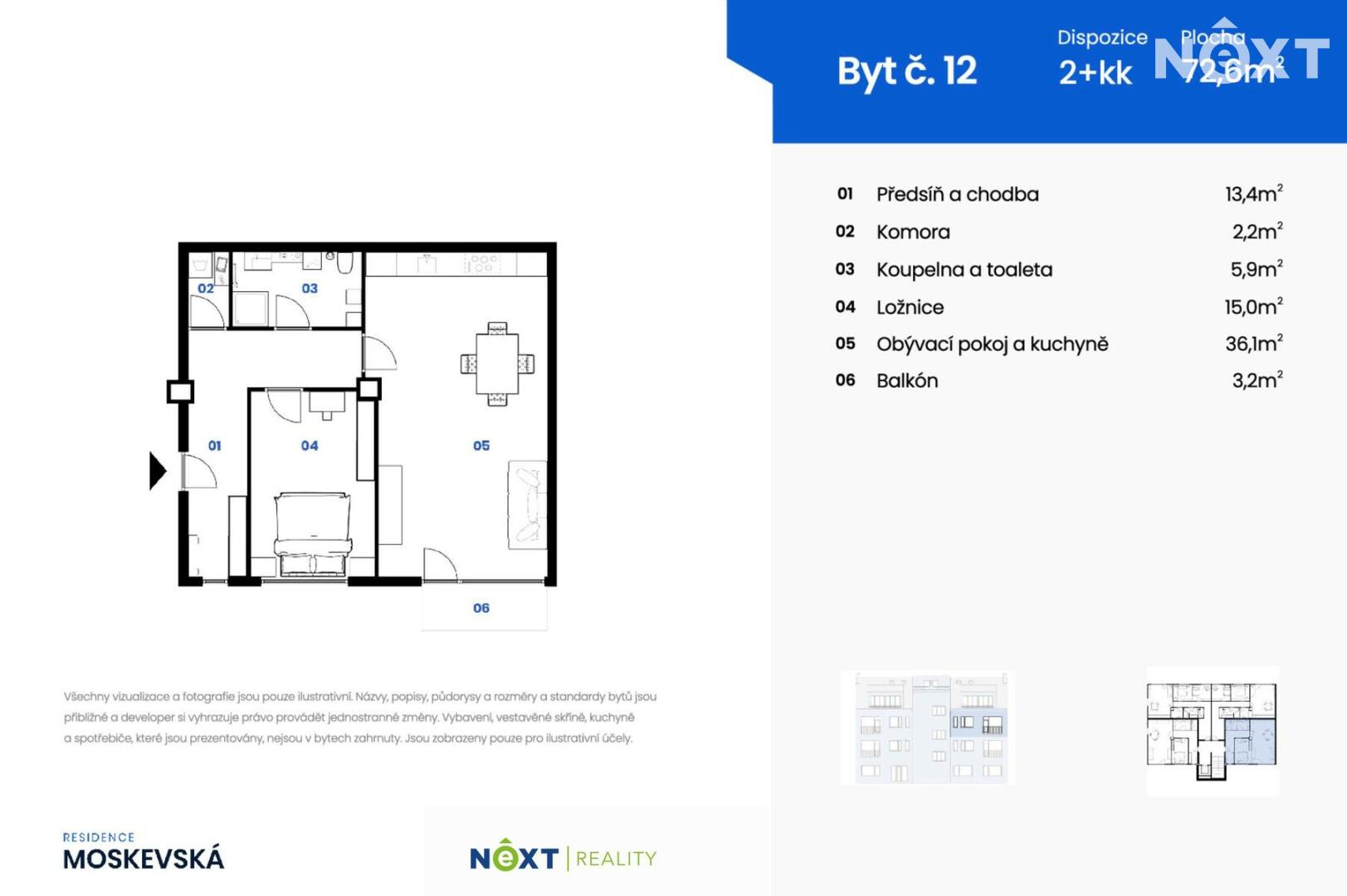 Výjimečné bydlení v samém srdci Karlových Varů - Rezidence Moskevská. Světlý a elegantní byt o dispozici 2+kk a podlahové ploše 72,6 m² se nachází ve 3. nadzemním podlaží prestižní novostavby. Tato rezidence patří k velmi žádaným projektům v centru města a spojuje moderní architekturu s praktickým komfortem.