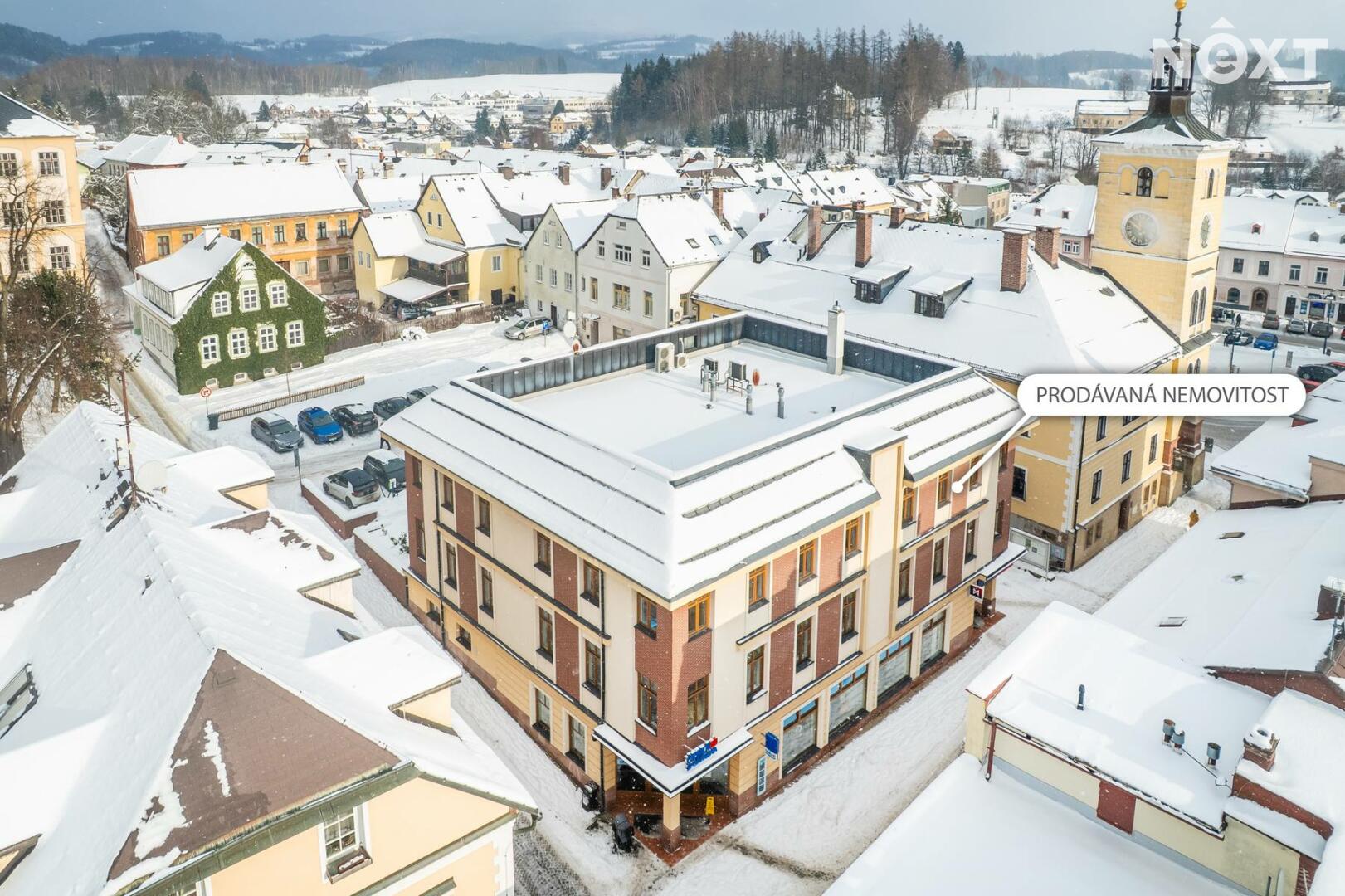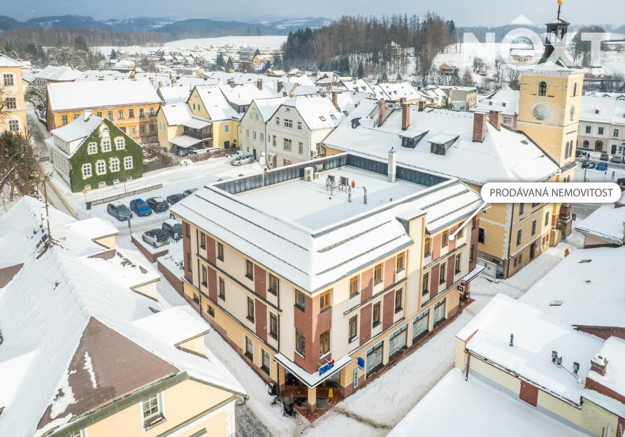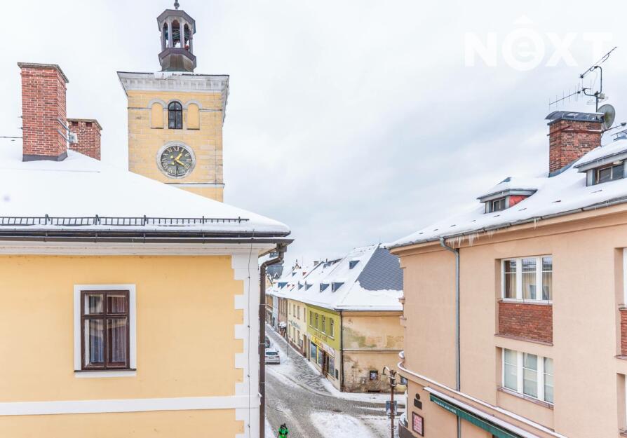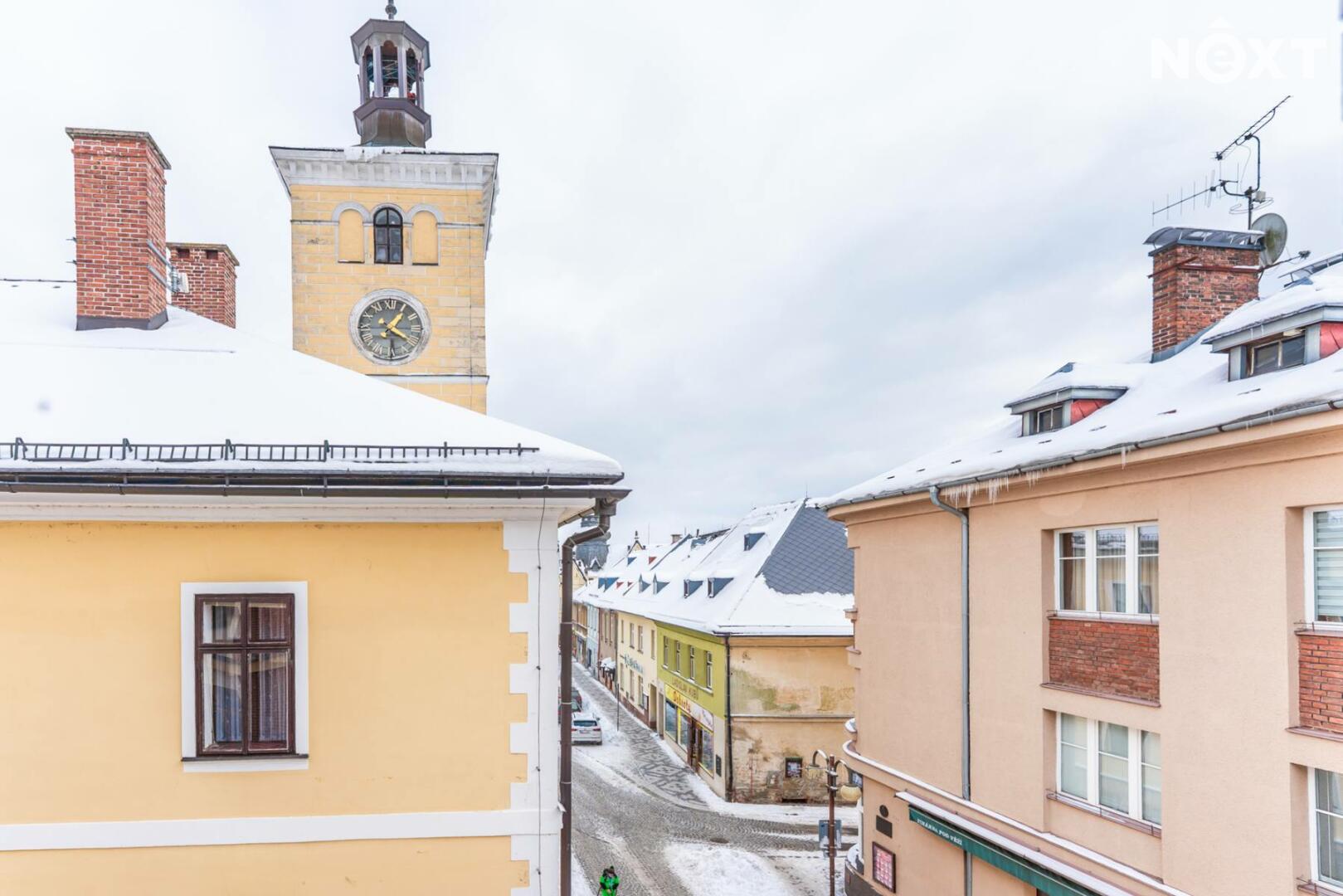 Prodej moderního bytu 2kk, 64 m², s parkovacím stáním a velkým sklepem v centru Jilemnice – pěší zóna ulice Jana Harracha.