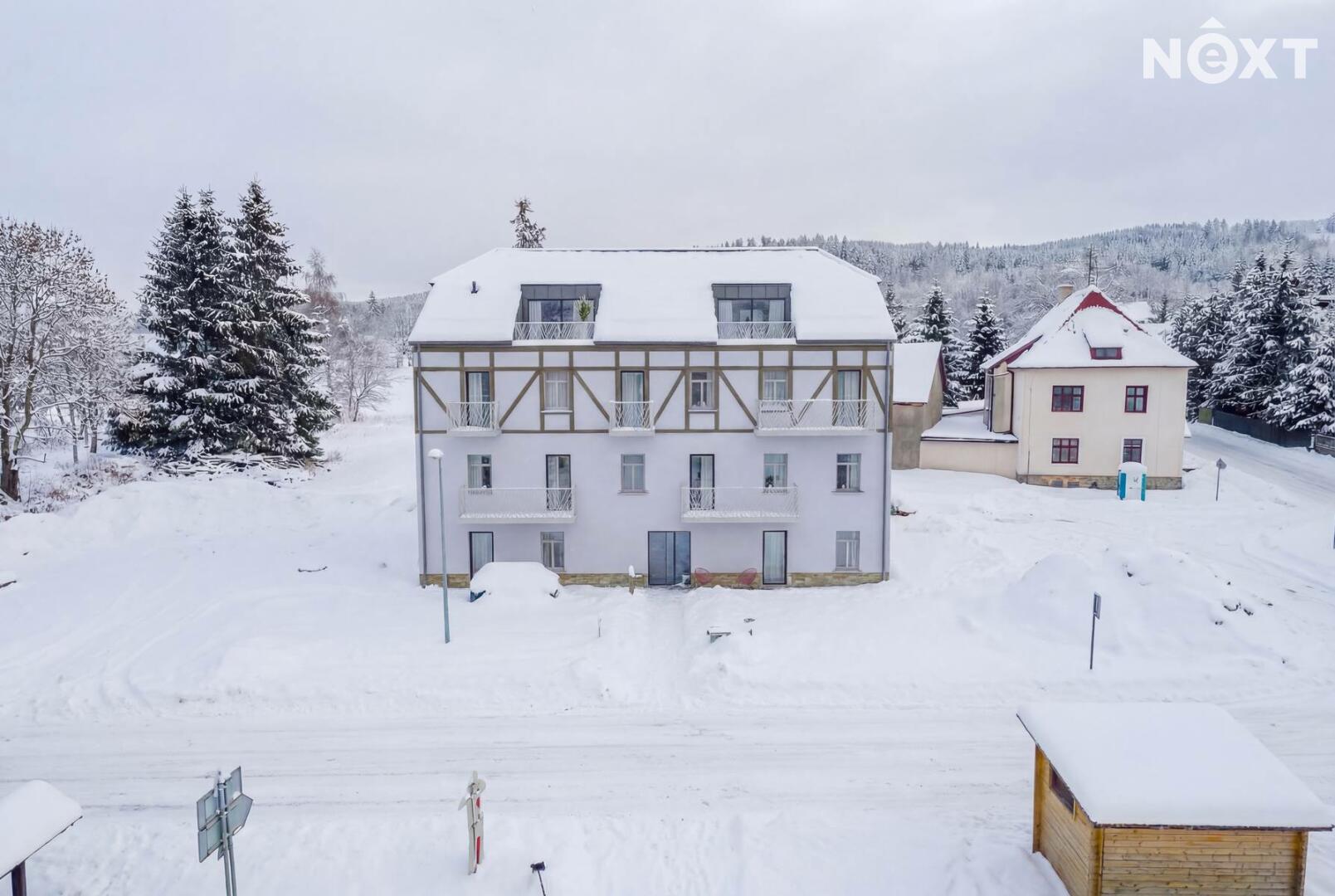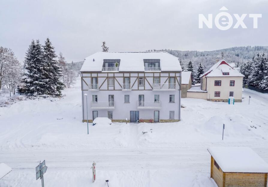 Apartmán 3+kk 57,1 m² + 4,6 m² balkon. Krušné hory - České Hamry k trvalému bydlení s nadstandardním servisem. Exkluzivně nabízíme k prodeji 9 apartmánů v Krušných horách - České Hamry v moderním čtyř patrovém bytovém domě, který je bezbariérový s výbornou dostupností z Prahy a okolních větších měst. Apartmány a celý bytový dům jsou realizovány ve vysokém standardu (izolační trojskla, zateplení, sanita a vybavení, včetně řešení vytápění apod.) Bytové jednotky jsou částečně vybaveny a některé mají balkón nebo terasu, úložné kóje na sportovní potřeby a ke každé je parkovací stání v areálu. Nabízíme i možnost individuálního vybavení podle Vašeho přání. Pokud nehledáte apartmán k trvalému bydlení, můžete zvolit možnost komerčního pronájmu bez starostí, v době, kdy jej nebudete využívat. V zimních měsících (prosinec-březen) je v areálu Klínovec a Fichtelberg (47 km sjezdovek a 50 km běžkařských tras) v letních měsících turisitika a cyklistika, nebo nádherný klid a relax. To jsou důvody, proč si vybrat České Hamry, pro jedinečnost místa a kvalitu celého projektu, který bude dokončen v červenci/srpnu 2025. Ráda Vás proto uvítám na prohlídce, nebo poskytnu podrobnější informace k projektu, ale bytových jednotek je jen 9 :-) Pro komunikaci uvádějte evidenční číslo zakázky N111504.