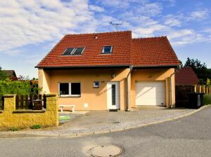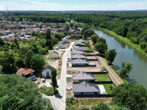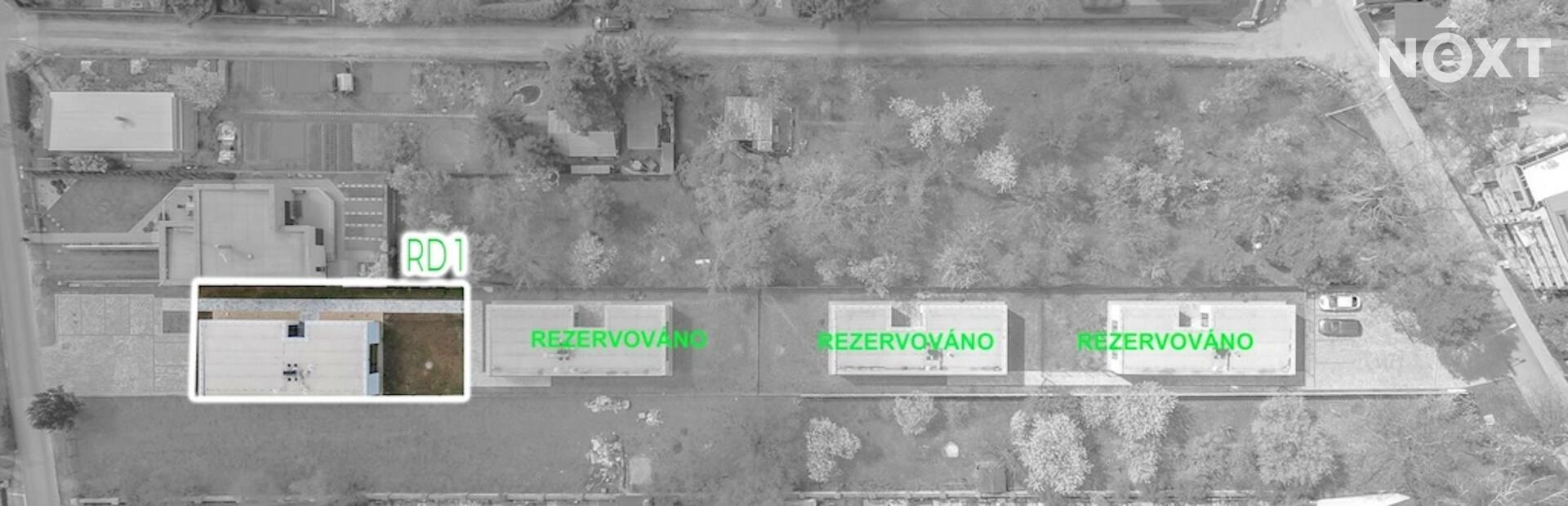Tento jednopodlažní dům o užitné ploše 112 m² je jedním ze čtyř moderních novostaveb s náležícím pozemkem o velikosti v součtu 402 m² (248 m² pozemek + 154 m² parkovací plochy).