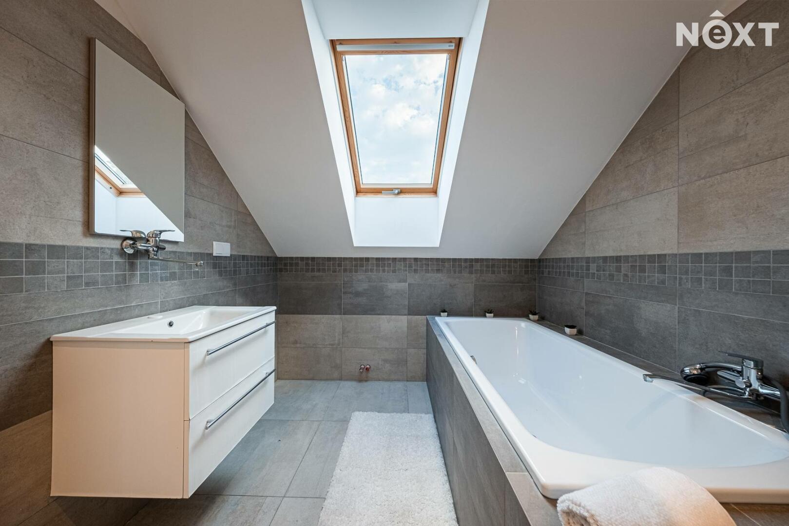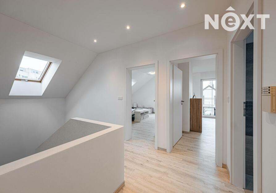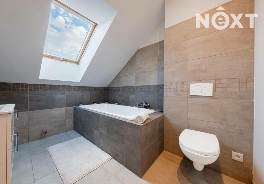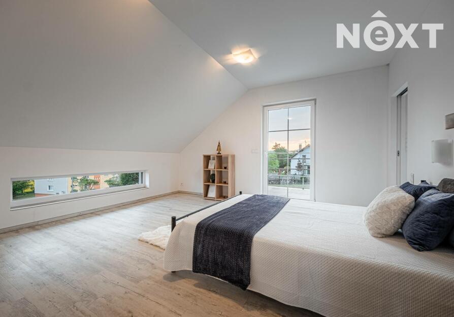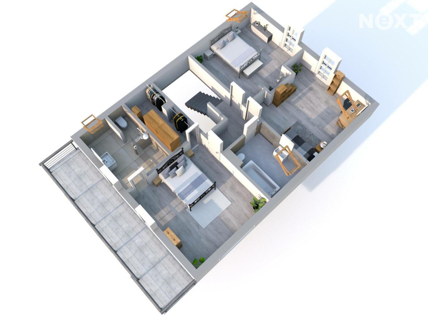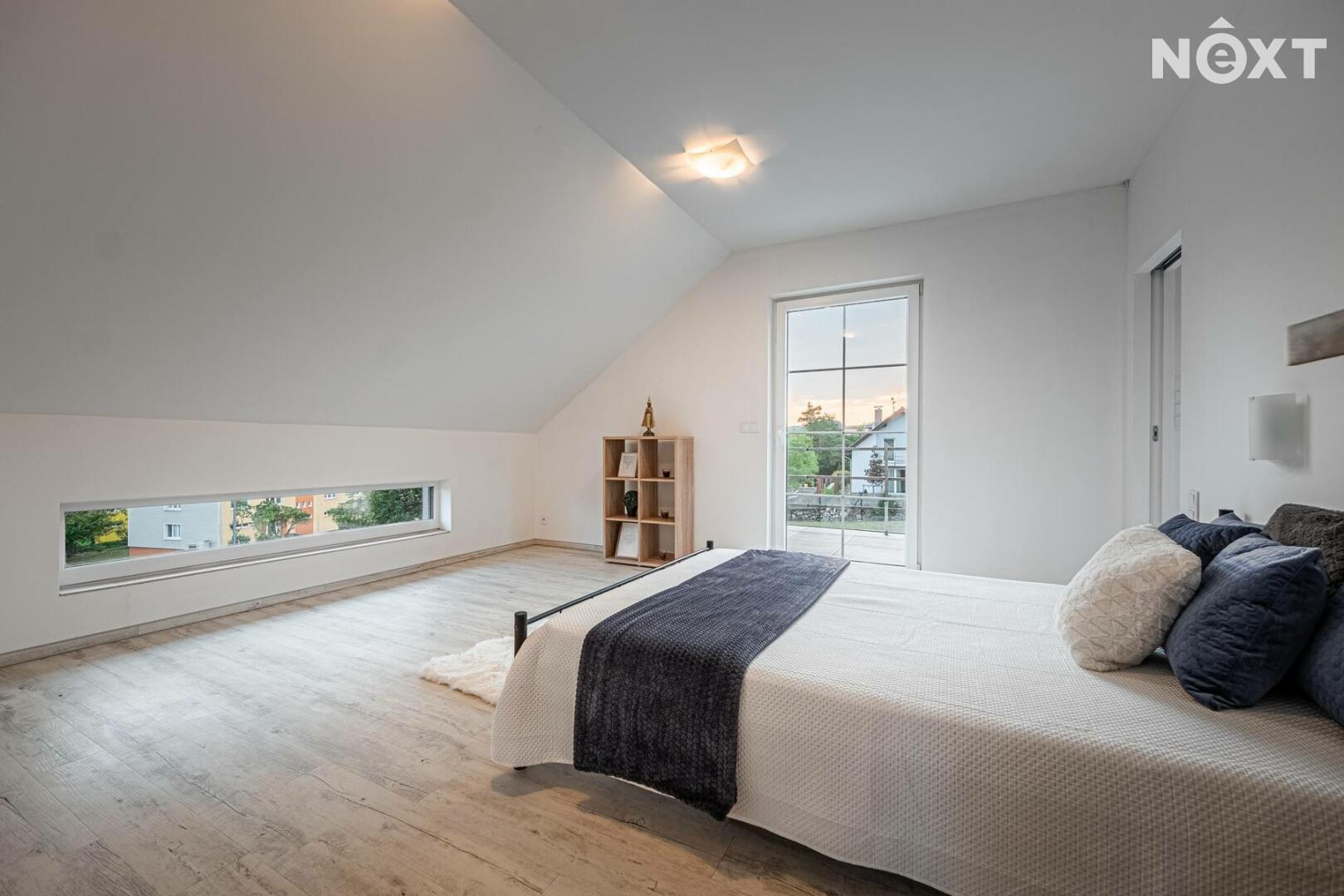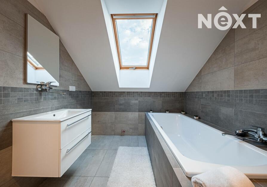 Po schodišti vystoupáte do podkroví, kde na vás čeká hlavní ložnice s vlastní koupelnou, šatnou a terasou o velikosti 20 m². Představte si ta rána – sprcha, káva na terase a nový den může začít. Další dvě ložnice a koupelna zajistí pohodlí celé rodině.