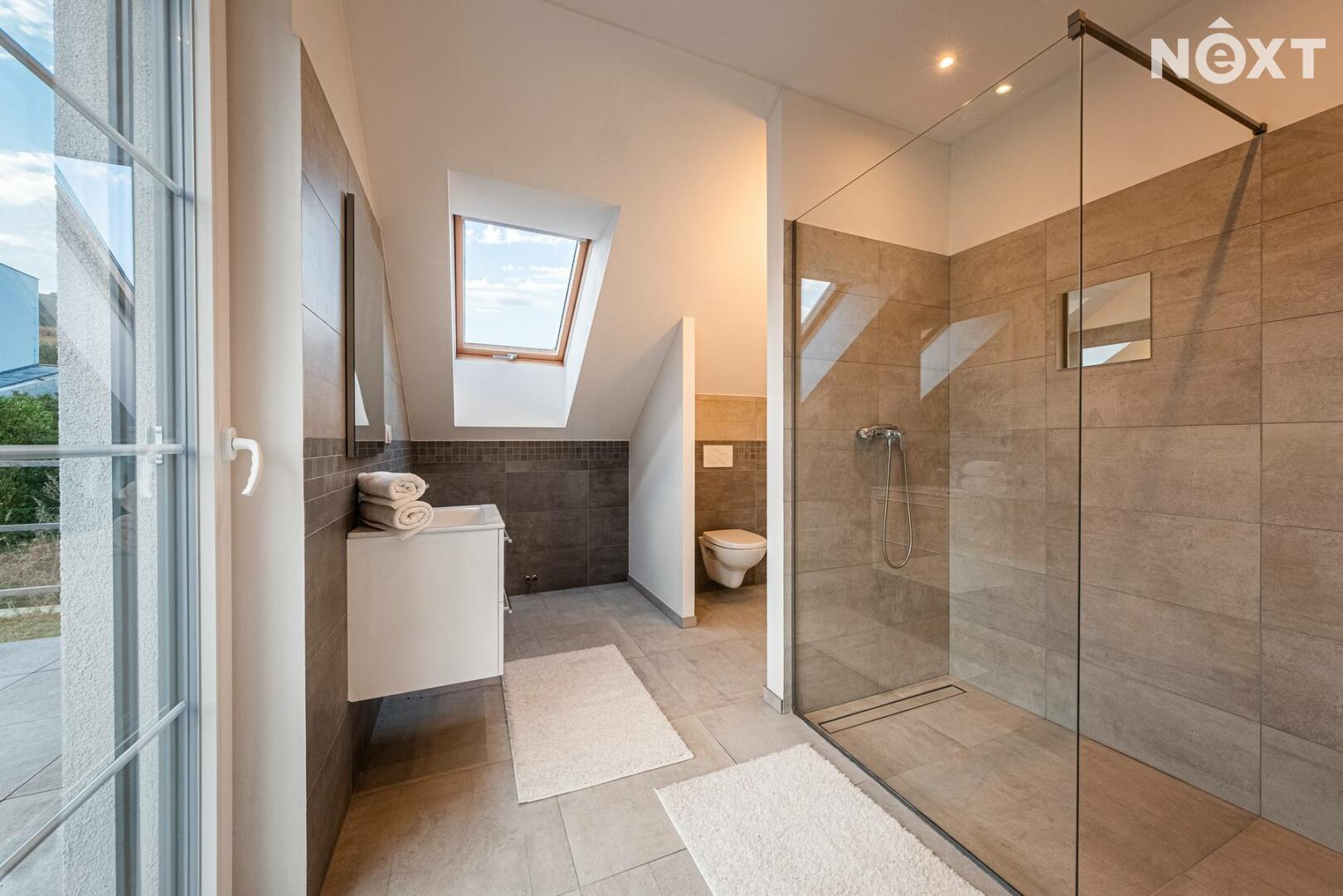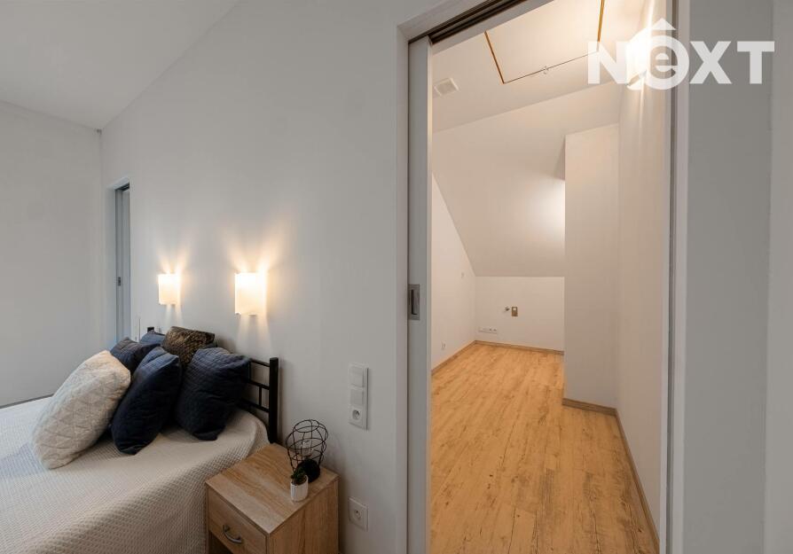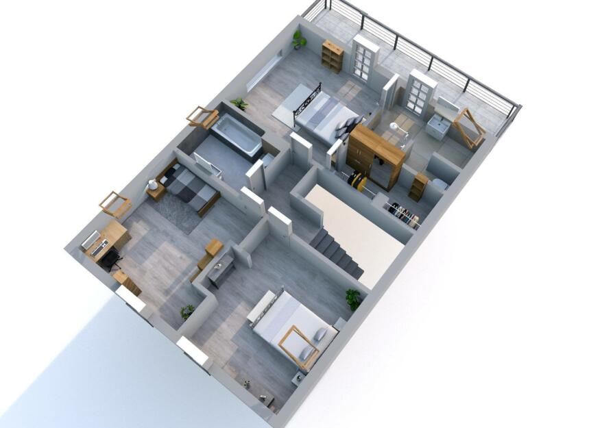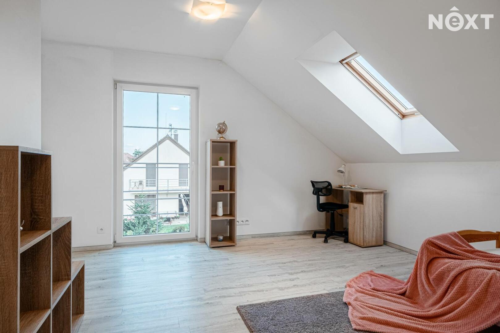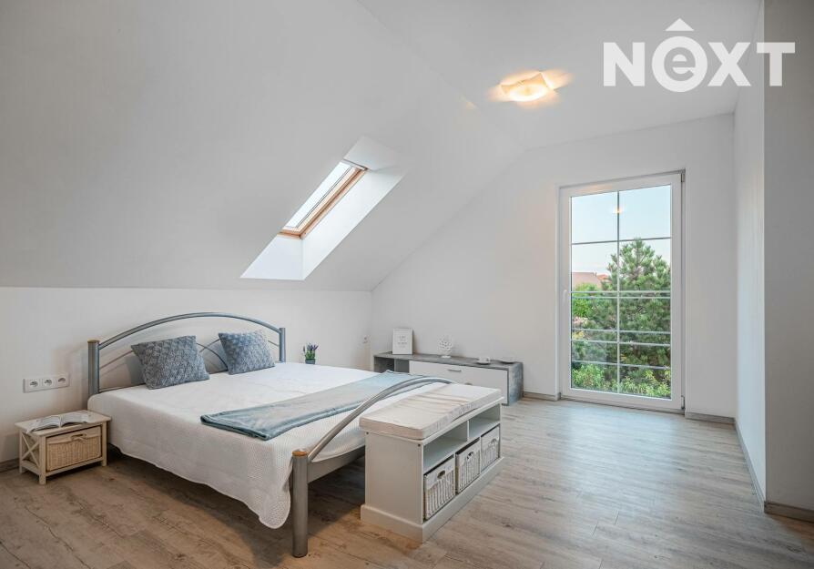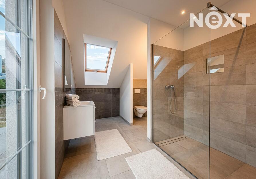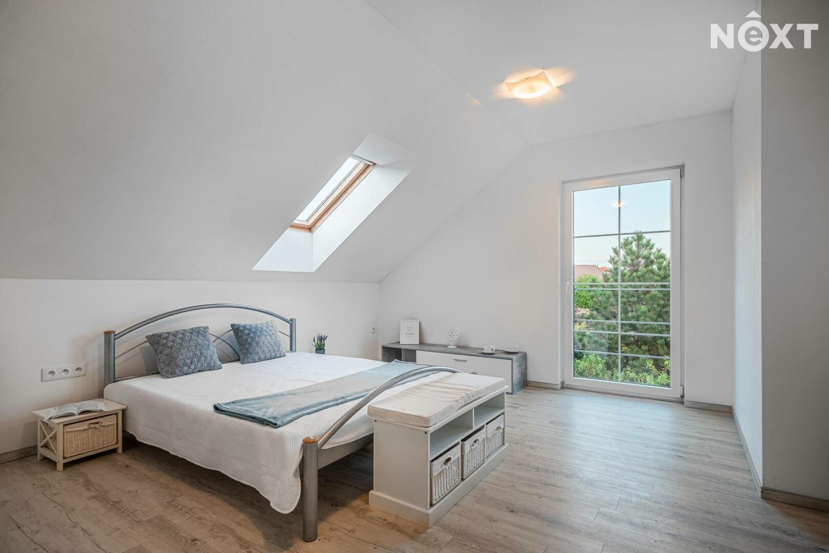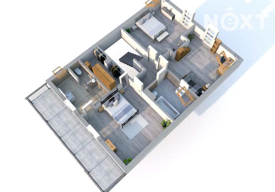 Po schodišti vystoupáte do podkroví, kde na vás čeká hlavní ložnice s vlastní koupelnou, šatnou a terasou o velikosti 20 m². Představte si ta rána – sprcha, káva na terase a nový den může začít. Další dvě ložnice a koupelna zajistí pohodlí celé rodině.