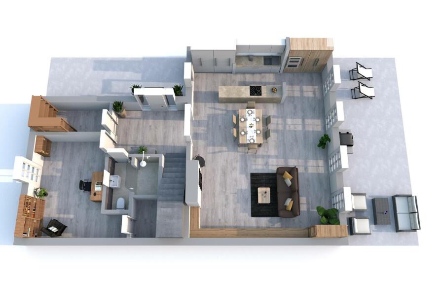 Dům je postavený z dřevocementových tvárnic se skvělou izolací, takže se nemusíte bát vysokých nákladů na energie. Venkovní žaluzie zajistí tepelný komfort i soukromí, inteligentní domácnost vám zjednoduší každodenní rutinu.