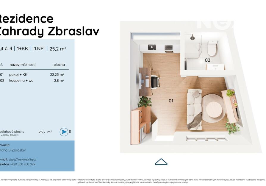 Nabízíme k prodeji světlou a moderní jednotku 1+kk o celkové ploše 25 m² situovanou v 1. nadzemním podlaží kompletně zrekonstruovaného domu v rezidenční lokalitě se skvělou občanskou vybaveností.
