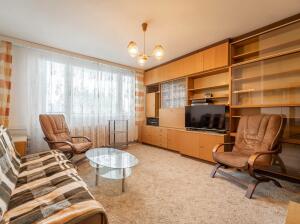 Dispozice nabízí světlý obývací pokoj s kuchyňským koutem a krásným výhledem na Prahu a Vltavu. Tři samostatné pokoje vhodné jako ložnice, dětské pokoje nebo pracovna, koupelna s vanou , samostatné WC. K bytu náleží sklepní koje o velikosti 2 m².