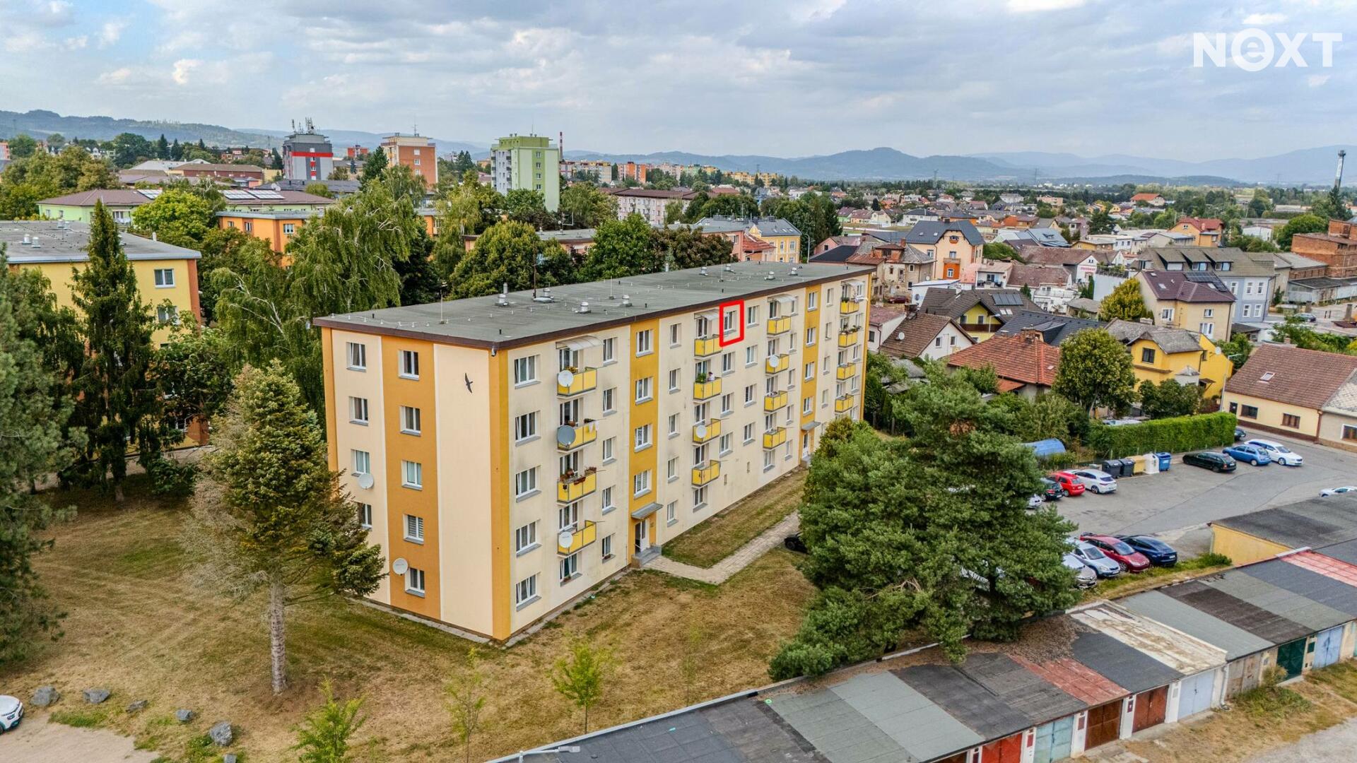 Byt ve 4.patře čtyřpatrového panelového domu. Orientace na SZ a JV, převážně s výhledem do zeleně a protější zástavby.