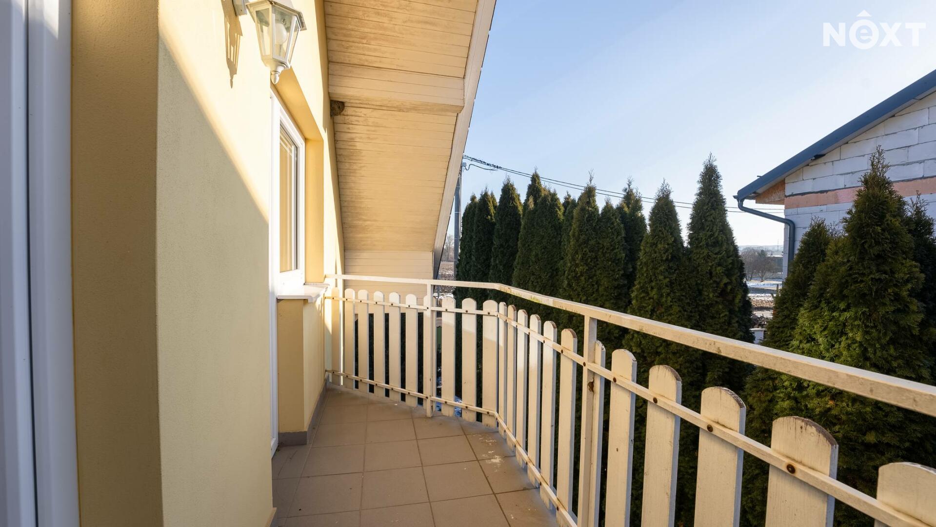 Dům je cihlový, plně oplocen, patrový se sedlovou střechou, garáží, venkovním parkovacím stáním, dlážděnou terasou a balkonem. V současné době objekt nevyžaduje žádné další investice.
