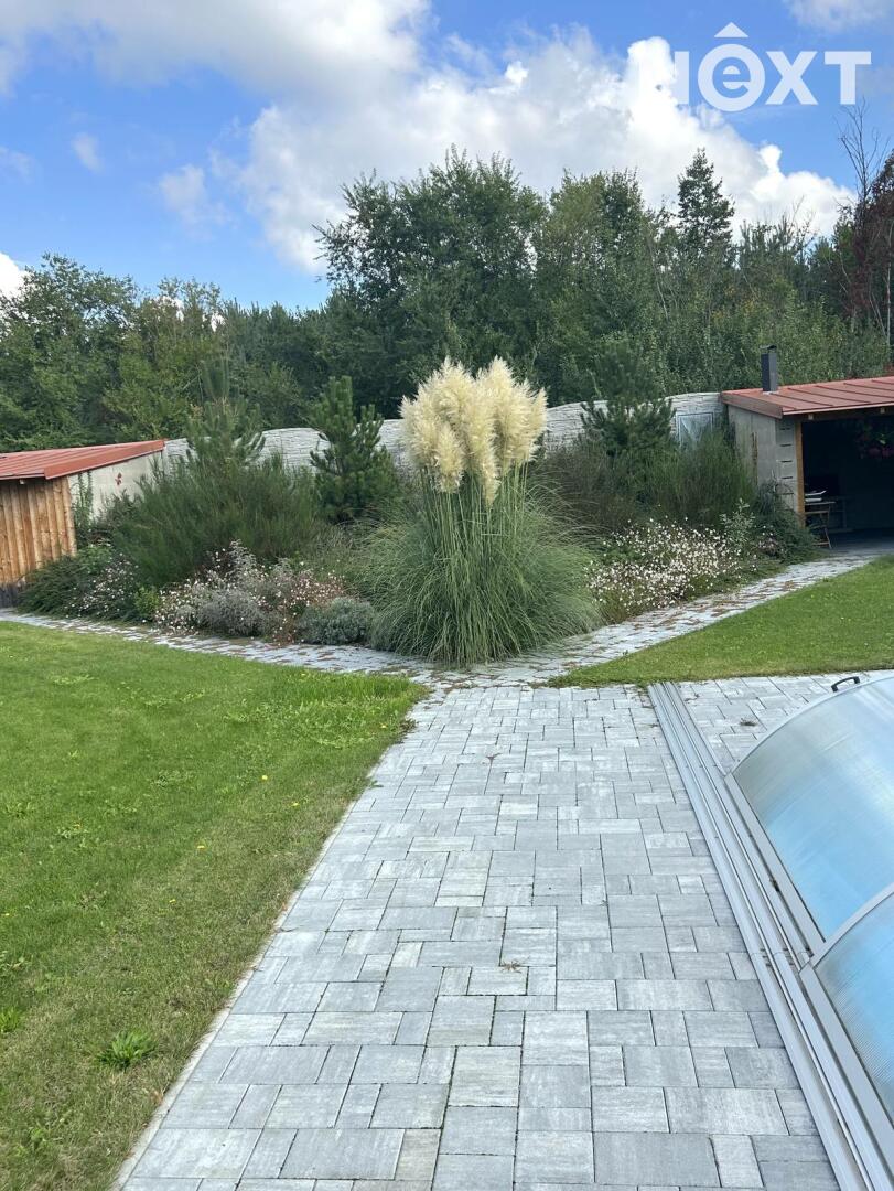 Tento dům byl dokončen a zkolaudován v roce 2022 a je vhodný jak pro trvalé bydlení, tak pro rodinnou rekreaci v klidném prostředí. K dispozici je rozlehlý pozemek o rozloze 980 m² s dobře udržovanou zahradou, včetně moderního zavlažovacího systému. Na zahradě najdete příjemnou terasu ve stínu a kryté posezení, ideální pro relaxaci po náročném dni. Vaši přátelé mohou využít krytý venkovní bazén, grilovací koutek nebo přenocovat v hostinském domku. Pozemek nabízí dostatek parkovacích míst pro tři auta, nabíjení elektromobilu a je chráněn kamerovým systémem. Velkou výhodou je vlastní studna a nádrž na dešťovou vodu, které minimalizují náklady na zavlažování zahrady. Obytný prostor je výborně zvukově a tepelně izolován. Velká trojskla zajišťují nejen izolaci, ale i dostatek světla v domě. Interiér je laděn do světlých tónů, minimalistický design a chytré uspořádání prostoru umožňují plynulý přechod mezi vnitřním a vnějším prostředím. Můžete si užívat krásy okolní krajiny přímo z obývacího pokoje. Dům je obložen dřevem, což mu dodává jedinečný charakter, doplněný zelení. Po vstupu vás uvítá světlá chodba vedoucí do obývacího prostoru s moderní kuchyní, perfektní pro rodinné setkání. Dále jsou zde dva dětské pokoje a ložnice. Dům obsahuje také zádveří, technickou místnost a úklidovou komoru. Koupelna je vybavena sprchovým koutem a je spojena s toaletou. Obývací pokoj má klimatizaci s funkcí topení a celý dům je vybaven podlahovým vytápěním. Okna s venkovními roletami nabízejí nádherný výhled do zahrady i na České středohoří. Topení a ohřev vody zajišťuje centrální elektrický kotel. Dům je připojen na obecní vodovod a kanalizaci.
