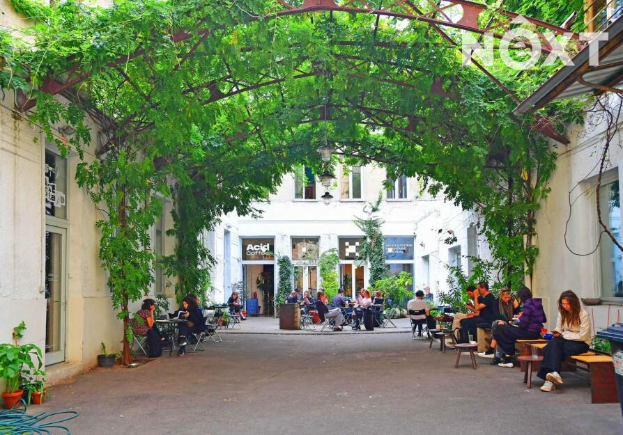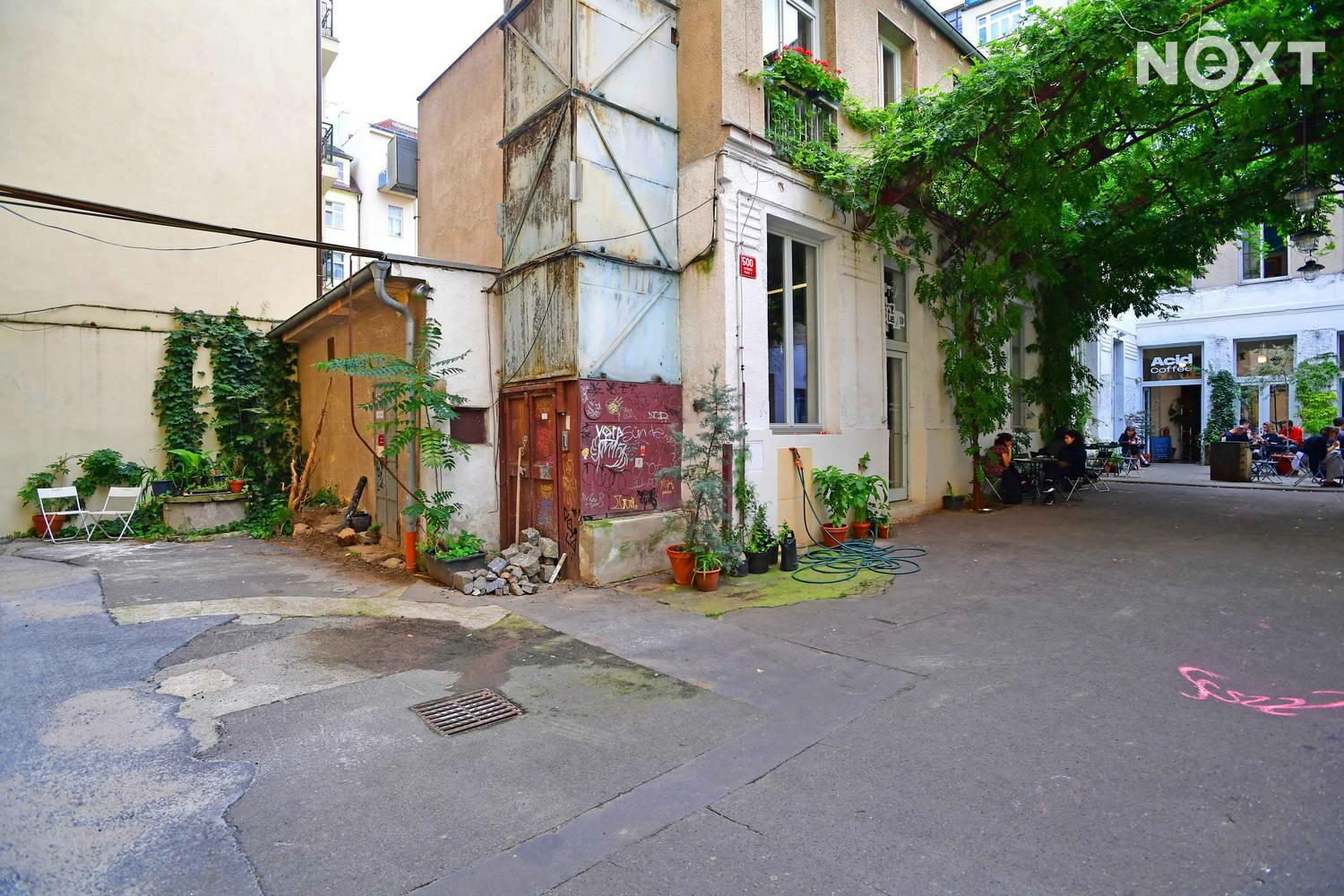Kuchyň je v samostatné místnosti a z ní se vchází na toaletu a do koupelny se sprchovým koutem. V bytě jsou vysoké stropy a velká okna do klidného vnitrobloku, kde se nachází kavárna Acid Coffee — oblíbené místo mladých umělců. Z bytu je přímý vstup na dvorek.