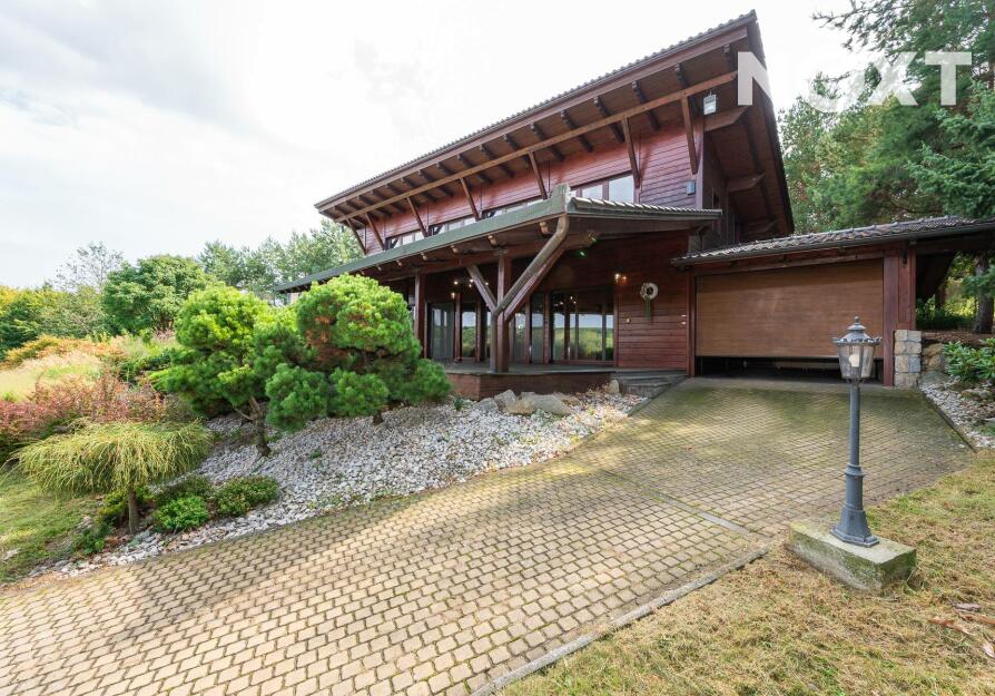 Nehledáte dům. Hledáte klid. Krásný dřevěný srub s panoramatem a 100% soukromím — příroda za dveřmi, služby pár minut.