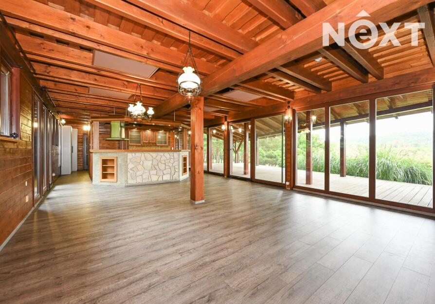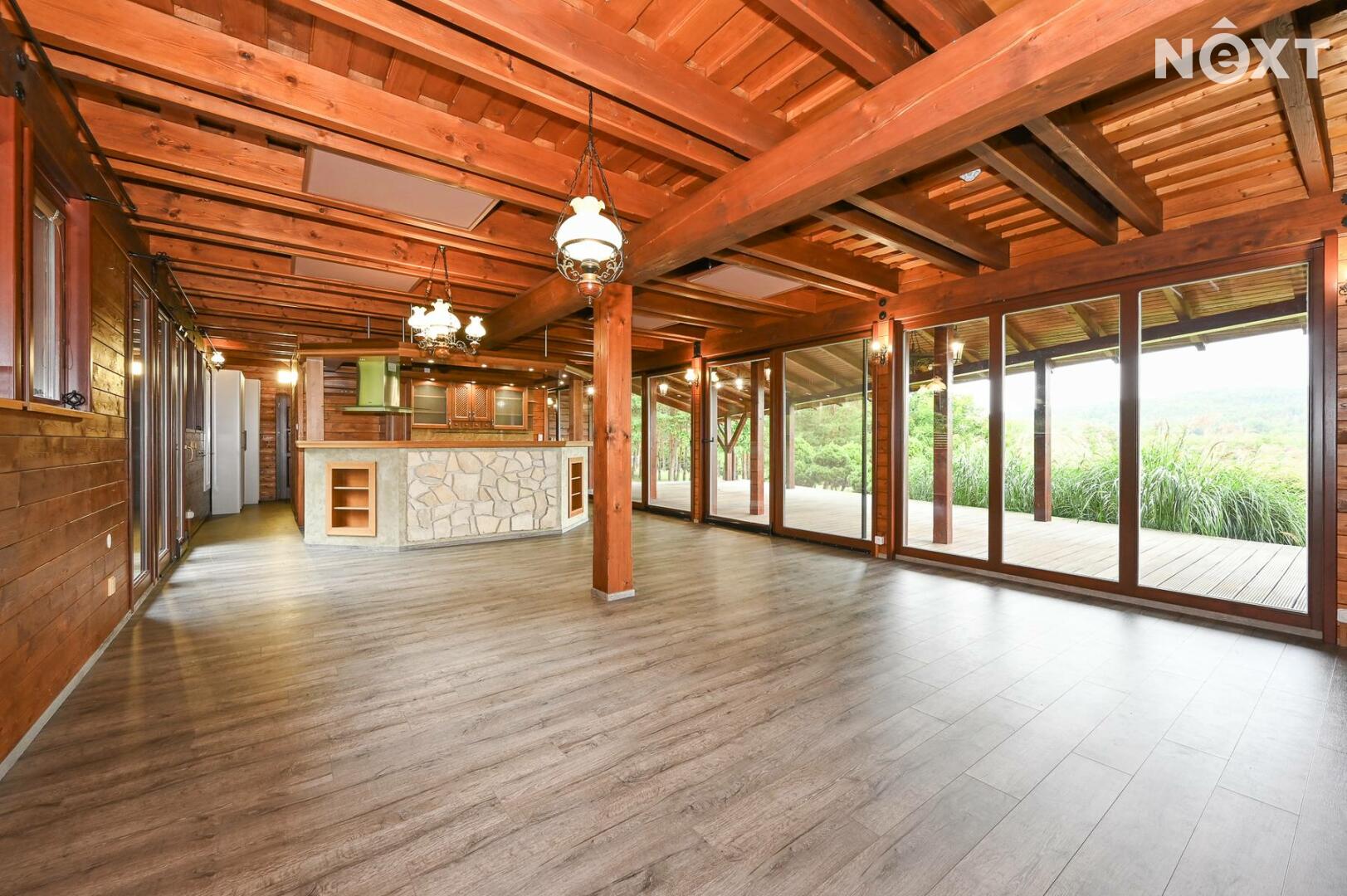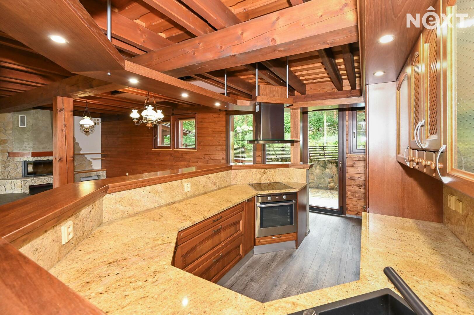 Jedním z hlavních lákadel je prostorná terasa podél spodního patra domu, odkud se otevírá dechberoucí výhled do okolní krajiny. Dřevěná okna i prosklené části domu jsou orientovány tak, aby co nejvíce využily okolní výhledy a přirozené světlo. Celý interiér působí vzdušně a propojení s přírodou je cítit doslova na každém kroku.