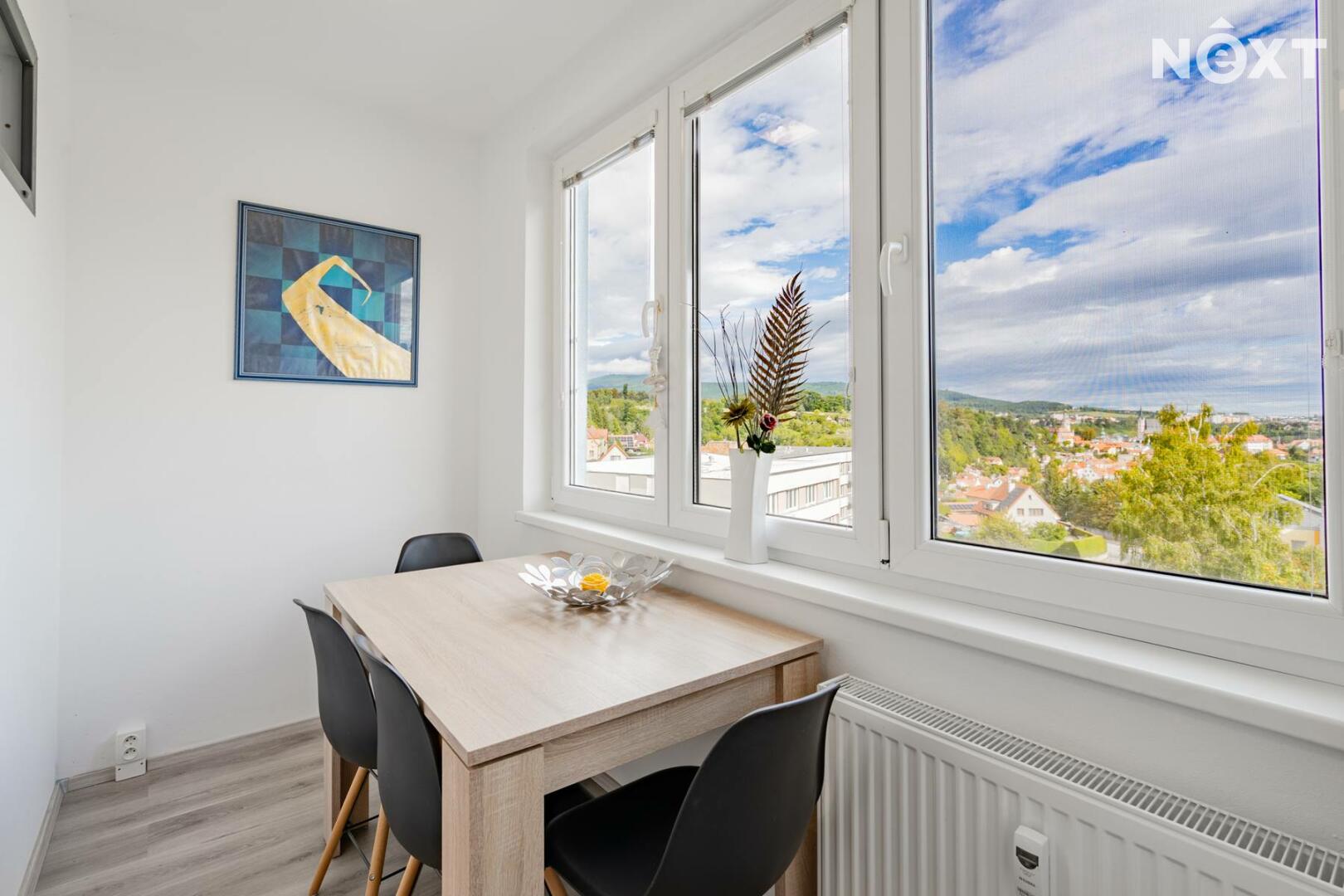 Nabízíme k prodeji prostorný byt 3+1 o výměře 73 m² s balkónem, nacházející se v 5. patře panelového domu v Českém Krumlově. Byt je částečně zrekonstruován – má zděné jádro, koupelna i kuchyně jsou po rekonstrukci. V chodbě a kuchyni je položen vinyl, v obývacím pokoji a dětském pokoji se nachází plovoucí podlaha a v ložnici je koberec. V prostorné chodbě je velká vestavěná skříň, která poskytuje dostatek úložného prostoru. K bytu náleží klasický sklep umístěný v suterénu domu. Byt má balkón orientovaný na druhou stranu od historického centra, avšak z oken bytu je nádherný výhled na historické centrum Českého Krumlova, odkud je vidět zámek i kostel. V docházkové vzdálenosti je kompletní občanská vybavenost – škola, školka, obchody i zastávka MHD. Pro více informací nebo domluvení prohlídky mě prosím kontaktujte. Pro komunikaci uvádějte evidenční číslo zakázky N114083.