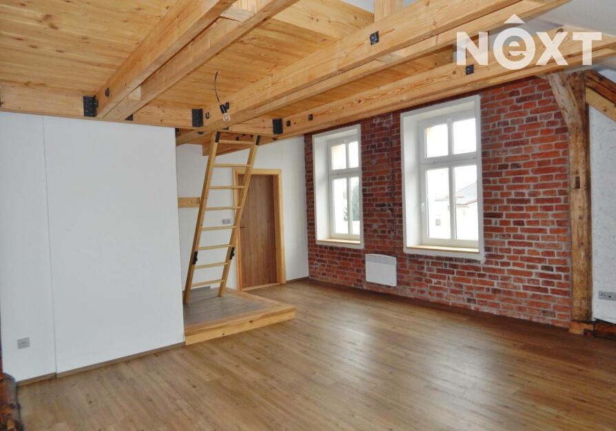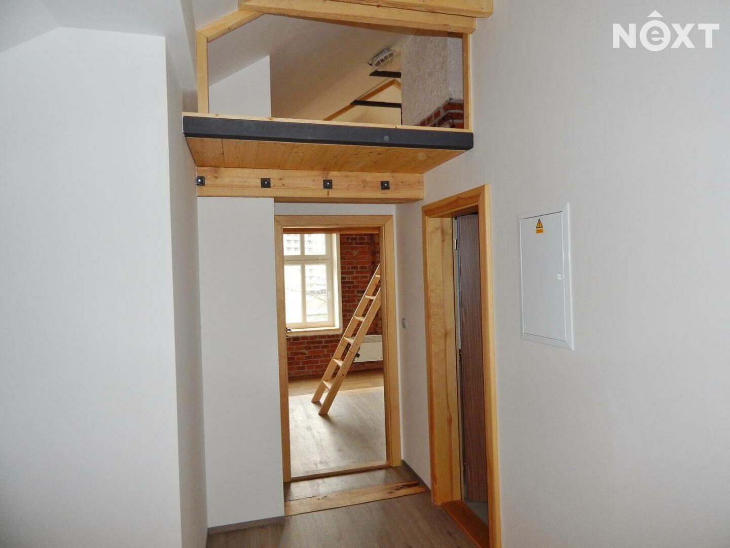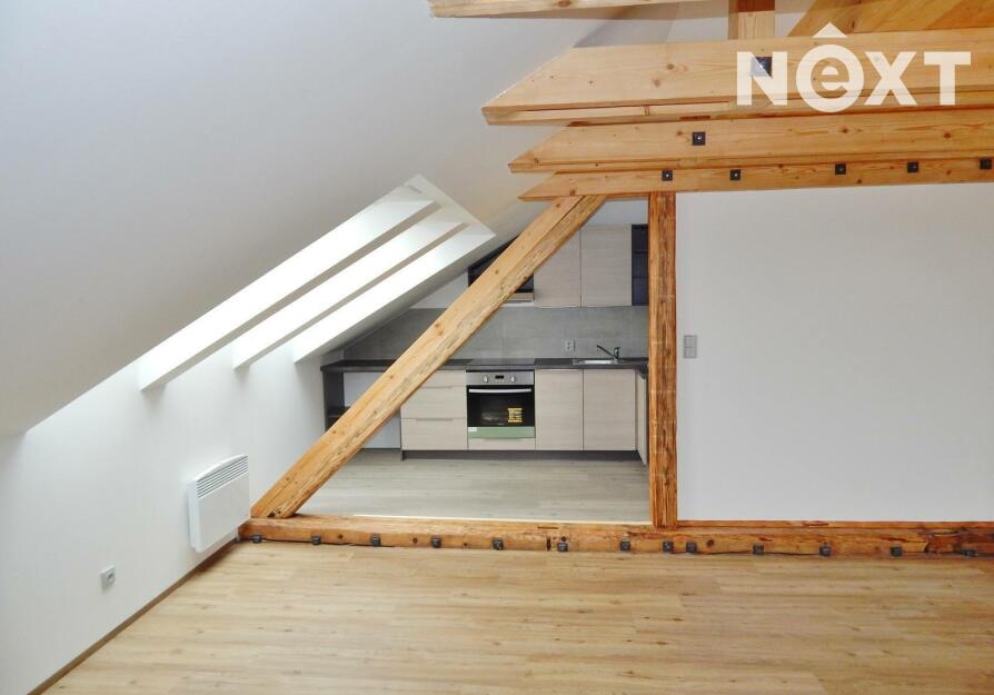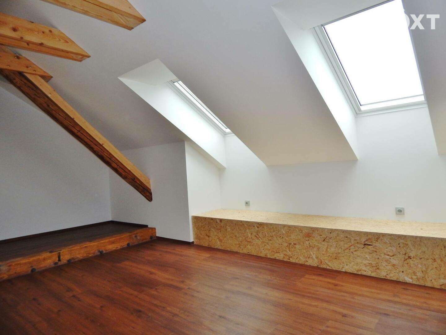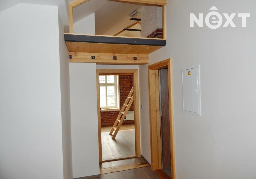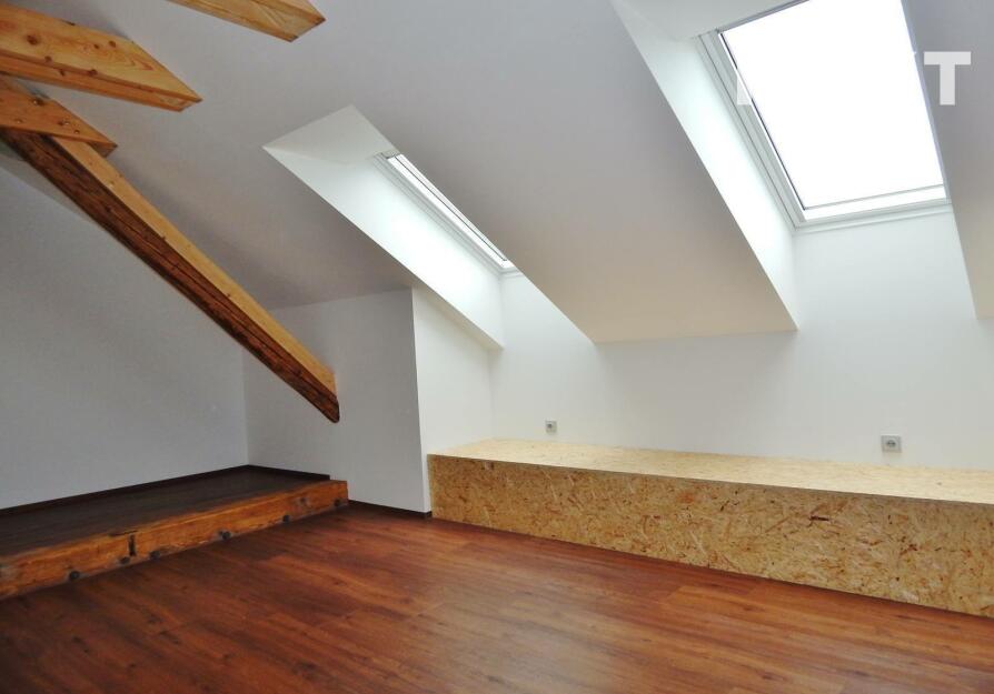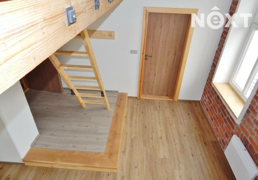 Zprostředkujeme pronájem podkrovního bytu 2+KK v Trutnově, který se nachází ve zděném rekonstruovaném domě v městské části Dolní Předměstí. V blízkosti OD Lidl, sportovního stadionu, zimního stadionu, krytého bazénu a 10 minut pěší chůze od centra. Byt má výměru podlahové plochy cca 60 m2. V bytě se nachází zařízený kuchyňský kout s novou kuchyňskou linkou a vestavěné patro s využitím jako ložní část apod. Kromě kuchyňské linky je byt bez vybavení. Koupelna je včetně WC. Vytápění elektřinou, denní a noční proud. Ohřev vody bojlerem. Plastová okna. Dům je zateplen. Ač je vytápění na elektřinu, jsou v bytě poměrně nízké náklady na vytápění. Jistota (vratná kauce) ve výši 42.000,- Kč. Nájemné ve výši 14.000,- Kč je uvedeno bez zálohových poplatků za služby. Ty činí 700,- Kč. Elektrickou energii si každý nájemce přihlašuje na sebe, doporučená minimální záloha činí 3.000,- Kč. Rozvod internetu je v domě zajištěn, smlouvu si uzavírá s příslušným poskytovatelem každý nájemce sám (350,- Kč měsíčně). Celkové měsíční náklady činí minimálně 18.050,- Kč. Parkování přímo za domem (cca 8 míst), nicméně bez garance volného místa (kdo dřív přijede domů, ten parkuje). Doporučujeme prohlídku. Foto je ilustrativní. Jedná se o stejný typ bytu, stejného vzhledu, jen zrcadlově otočený. Pro komunikaci uvádějte evidenční číslo zakázky N114102.