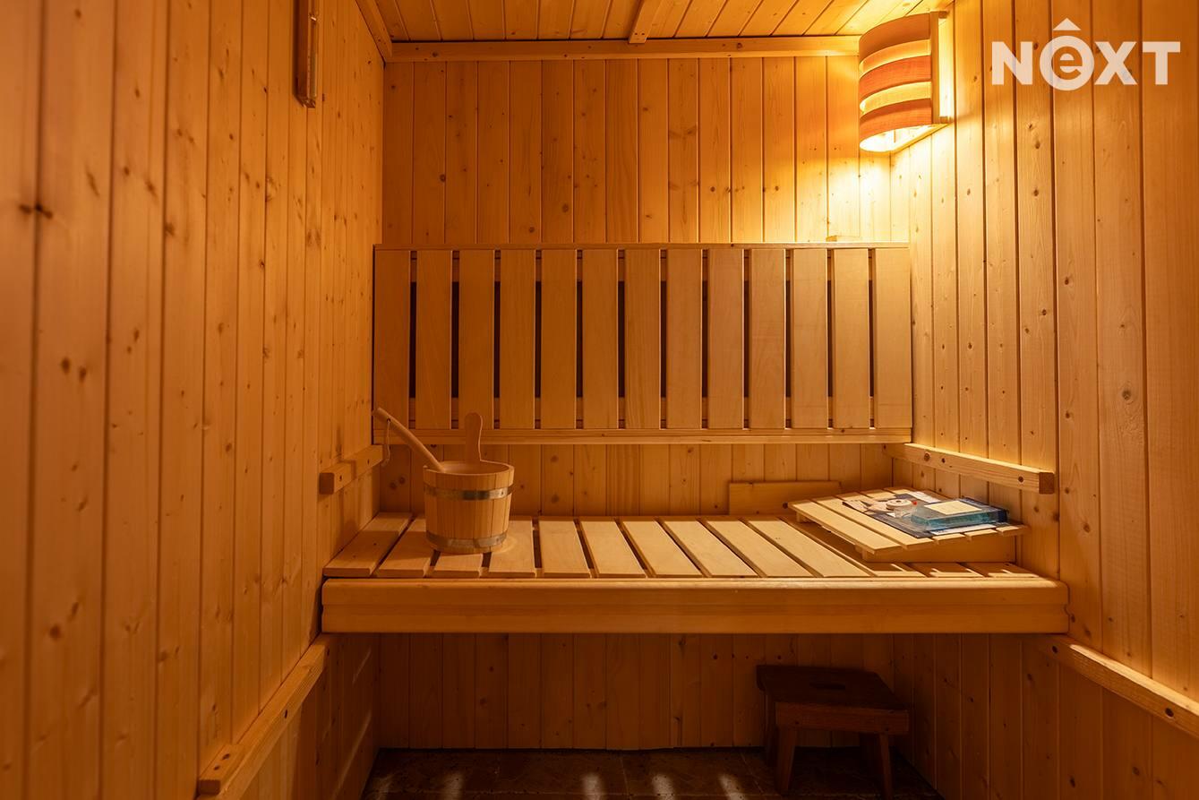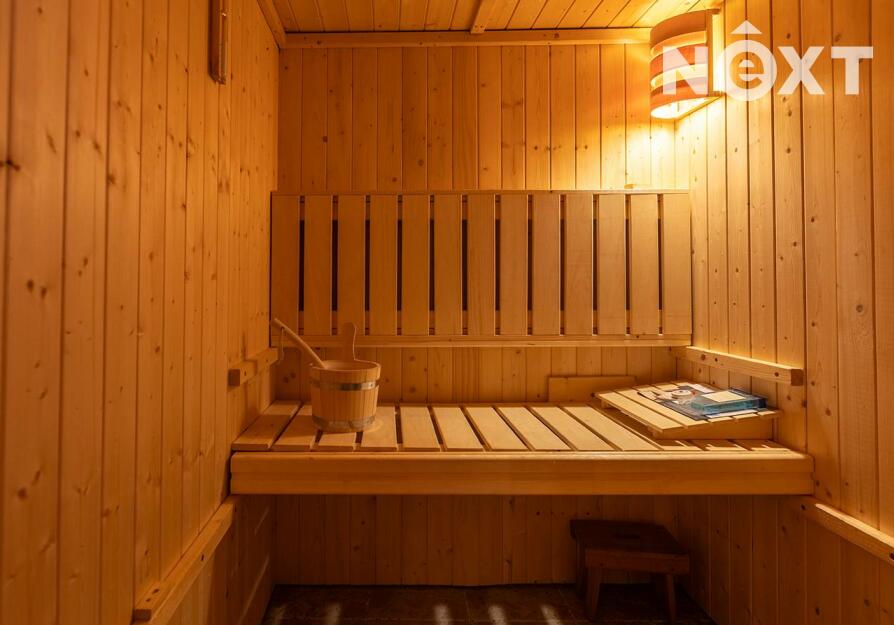 Přízemí: obytná místnost s kuchyní a kachlovými kamny, koupelna s WC, infrasauna pro 2 osoby