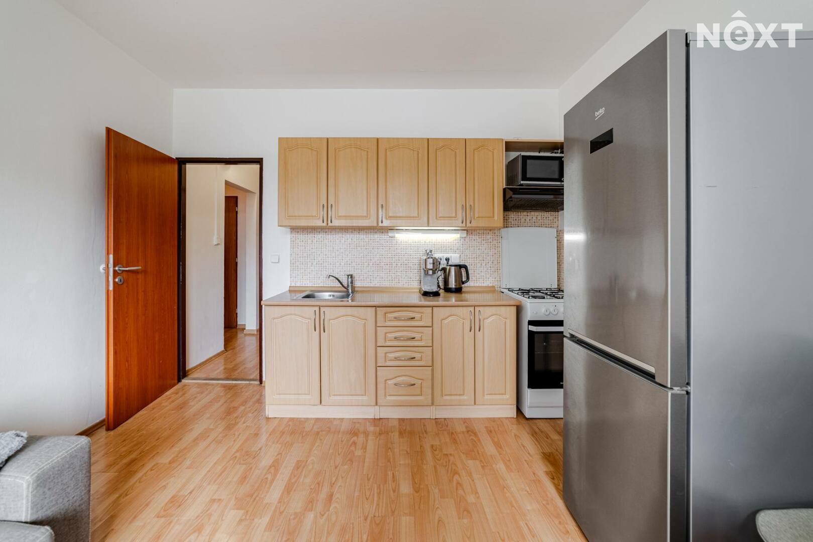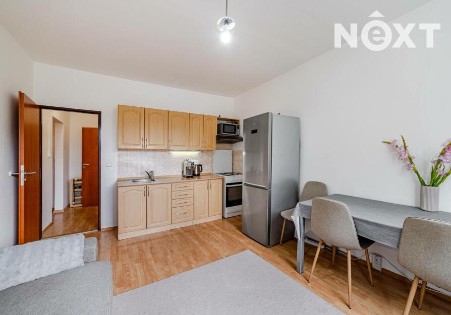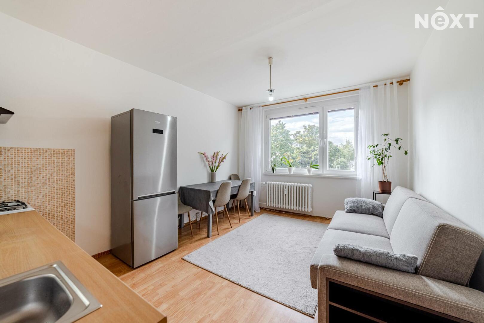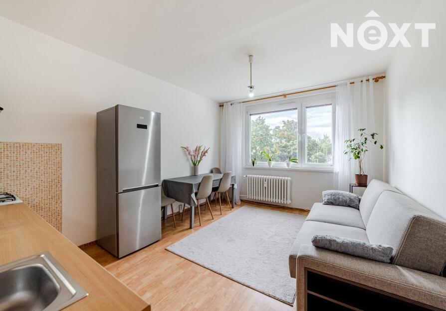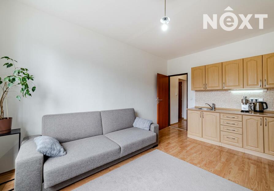 Byt má praktické dispoziční řešení – kromě hlavního obytného prostoru s kuchyňským koutem nabízí i samostatný pokoj a prostornou komoru přímo v bytě, kterou lze pohodlně využít i jako šatnu K bytu také náleží sklepní kóje, ideální pro uložení sezónních věcí.