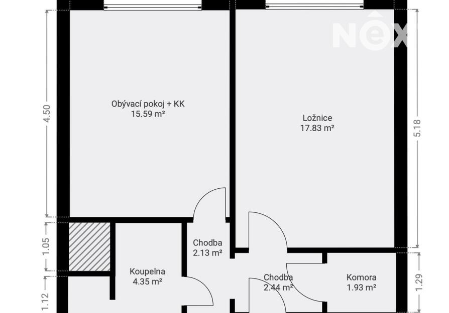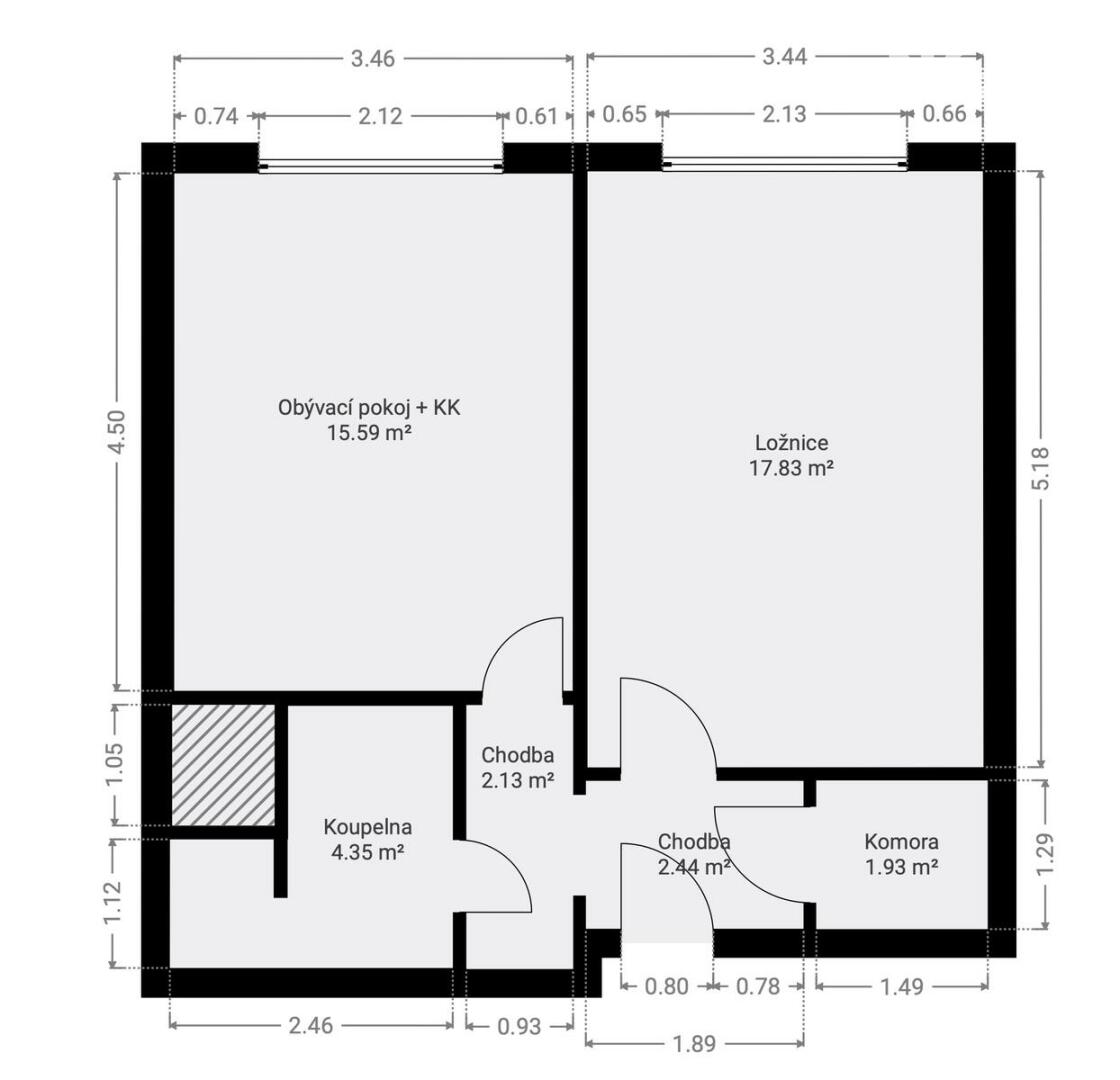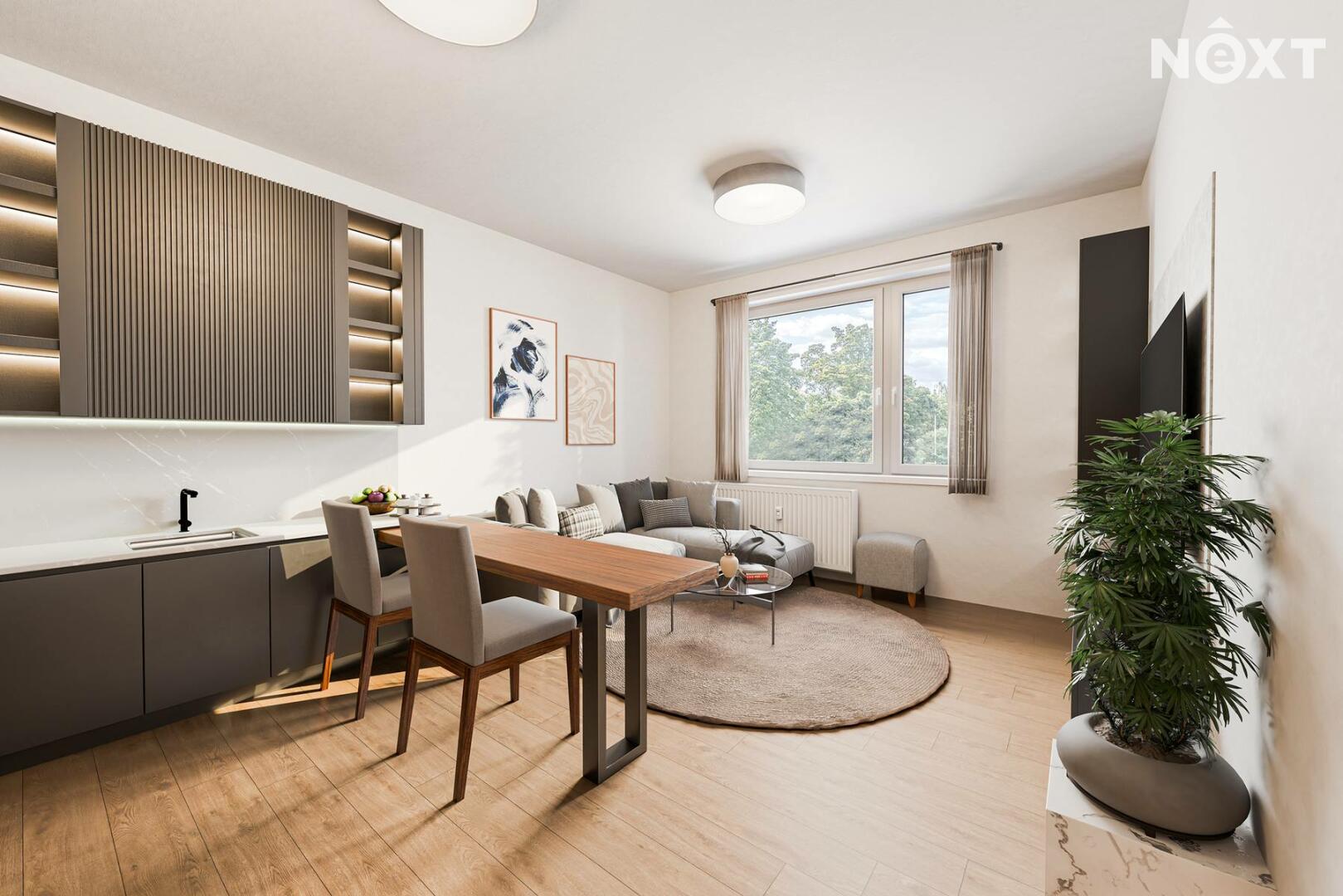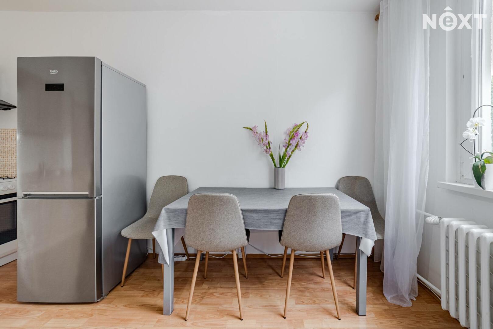 Byt má praktické dispoziční řešení – kromě hlavního obytného prostoru s kuchyňským koutem nabízí i samostatný pokoj a prostornou komoru přímo v bytě, kterou lze pohodlně využít i jako šatnu K bytu také náleží sklepní kóje, ideální pro uložení sezónních věcí.