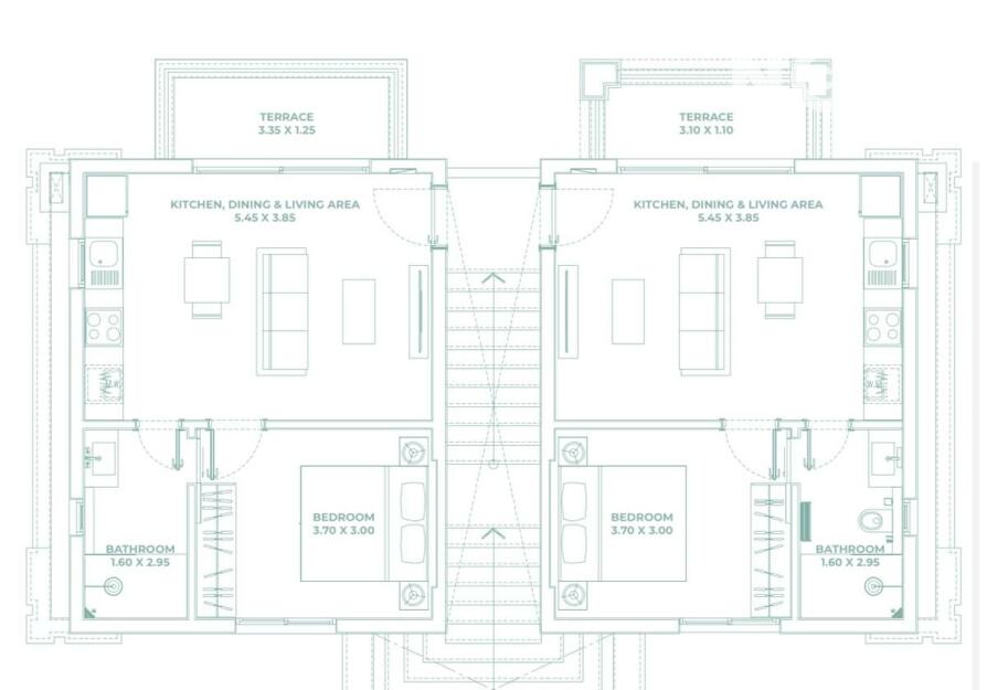 Velikost patrového apartmánu je 50 m², DISPOZICE:.