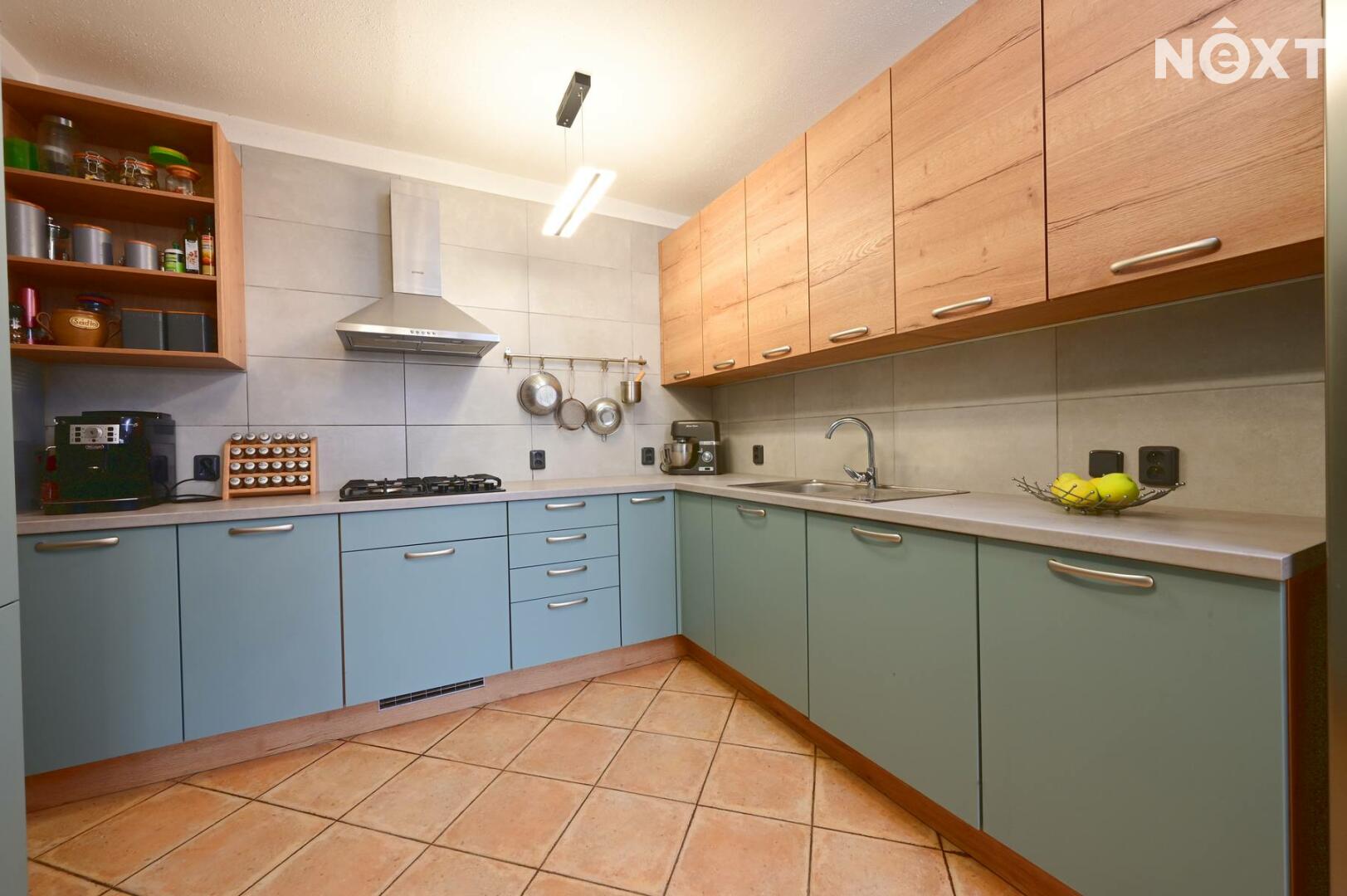 • jídelna moderní kuchyňský kout z roku 2021, který disponuje vestavěnými spotřebiči (plynový sporák, myčka, mikrovlnka, horkovzdušná trouba)