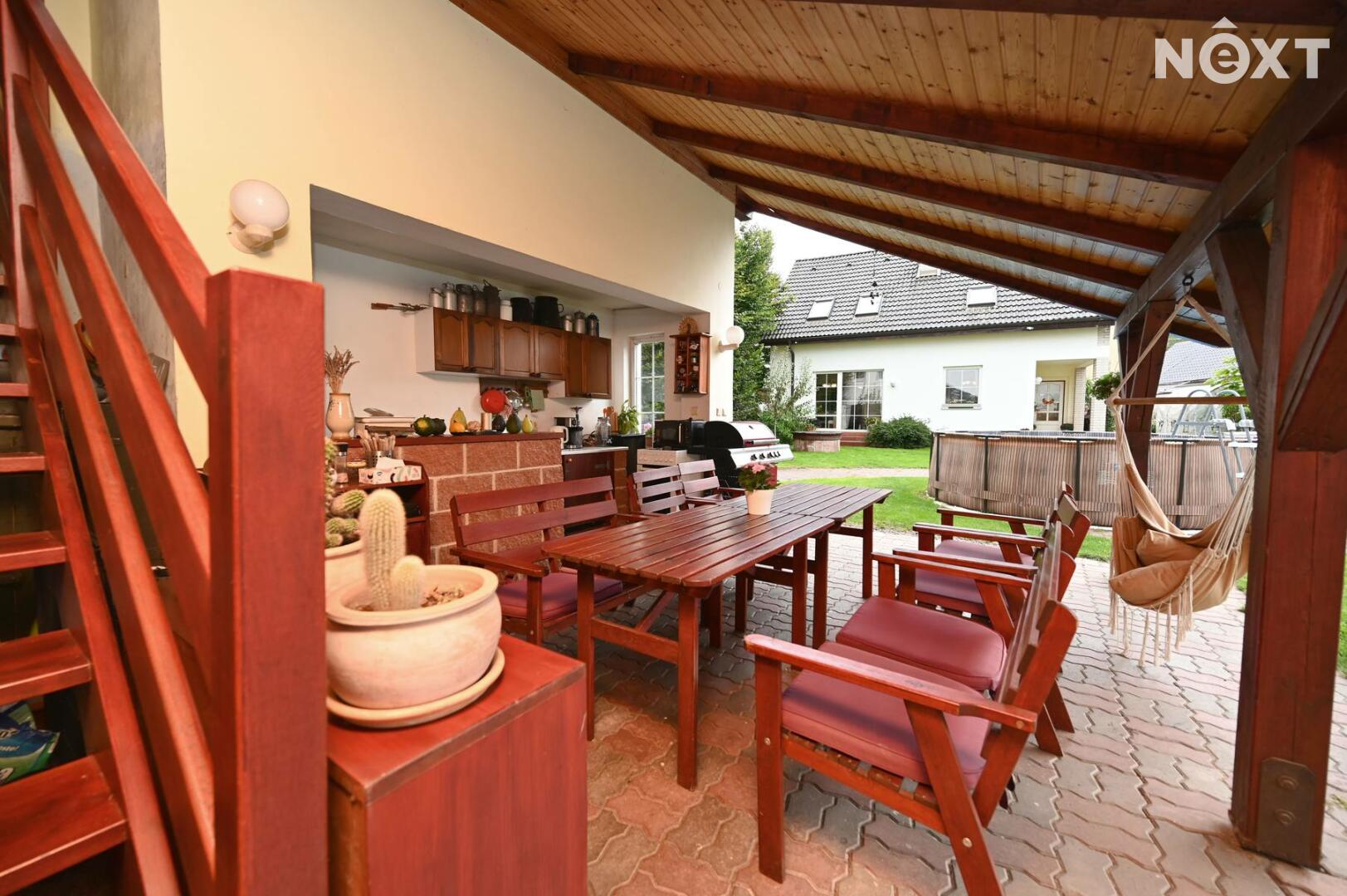 • Krytá pergola s letní kuchyní ( ideální pro celoroční posezení s přáteli anebo jako praktické parkování v zimě)