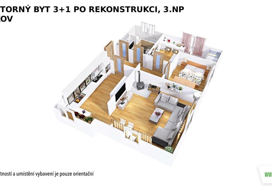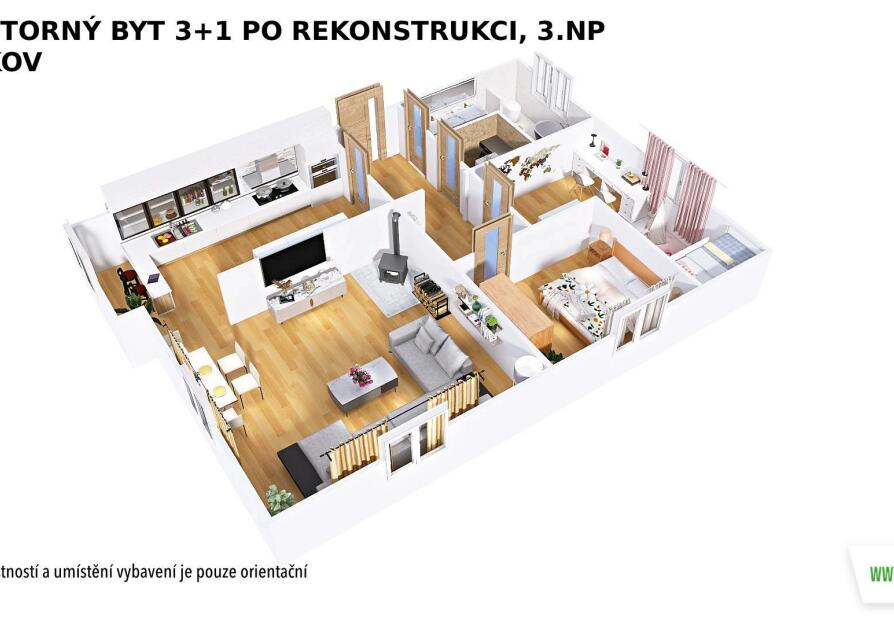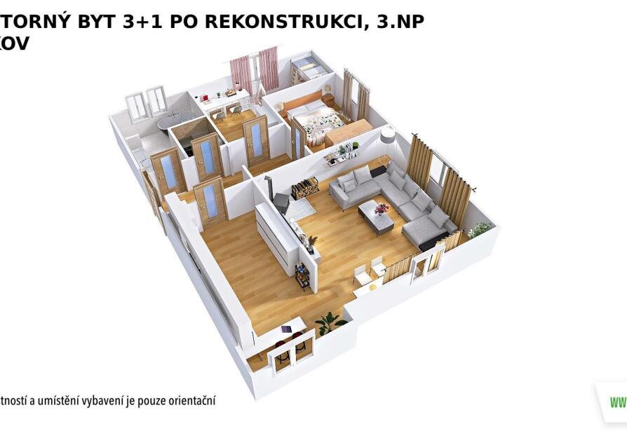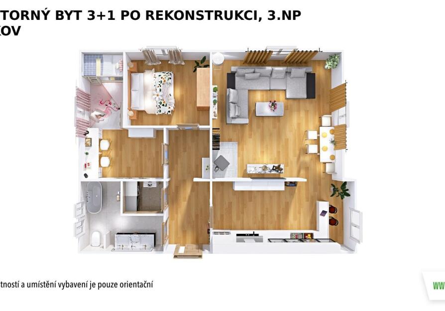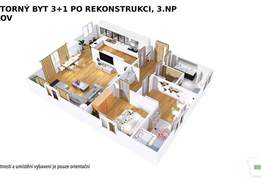 • Dispozice 3+1 – prostorné a světlé místnosti