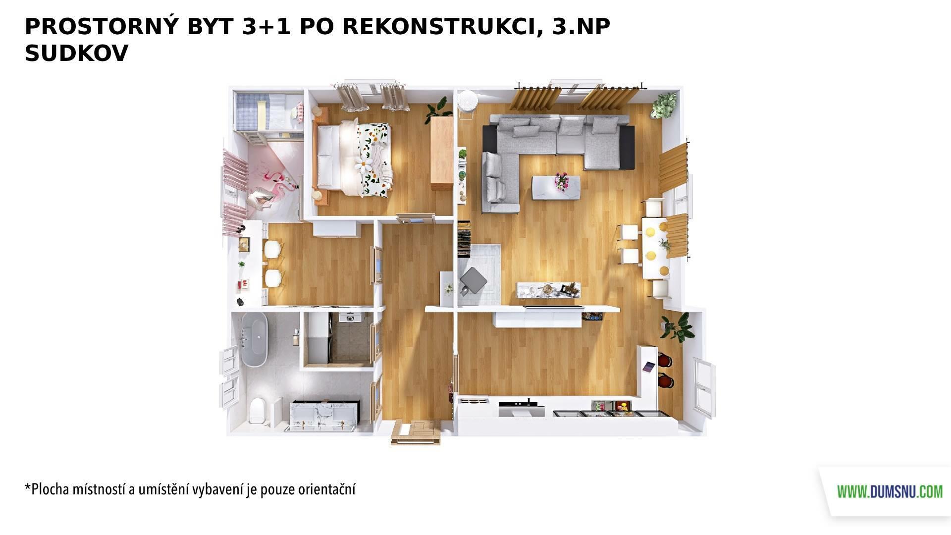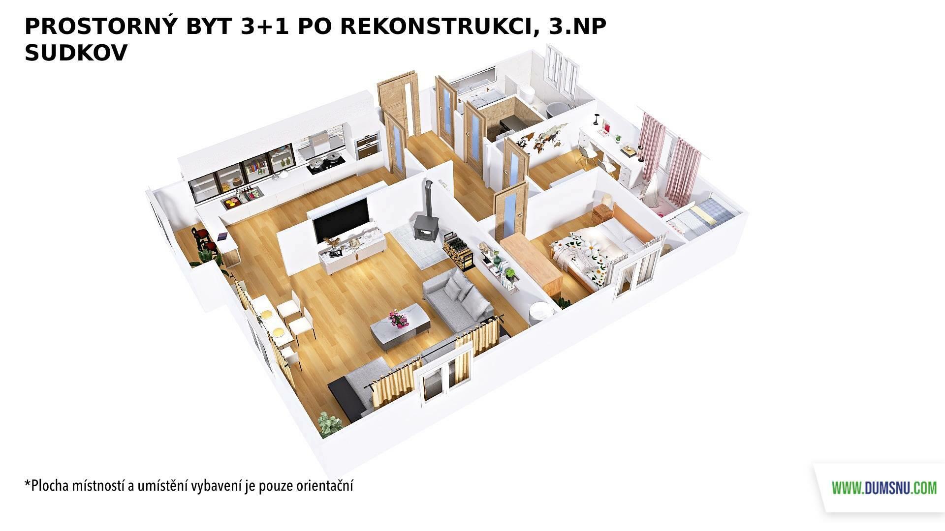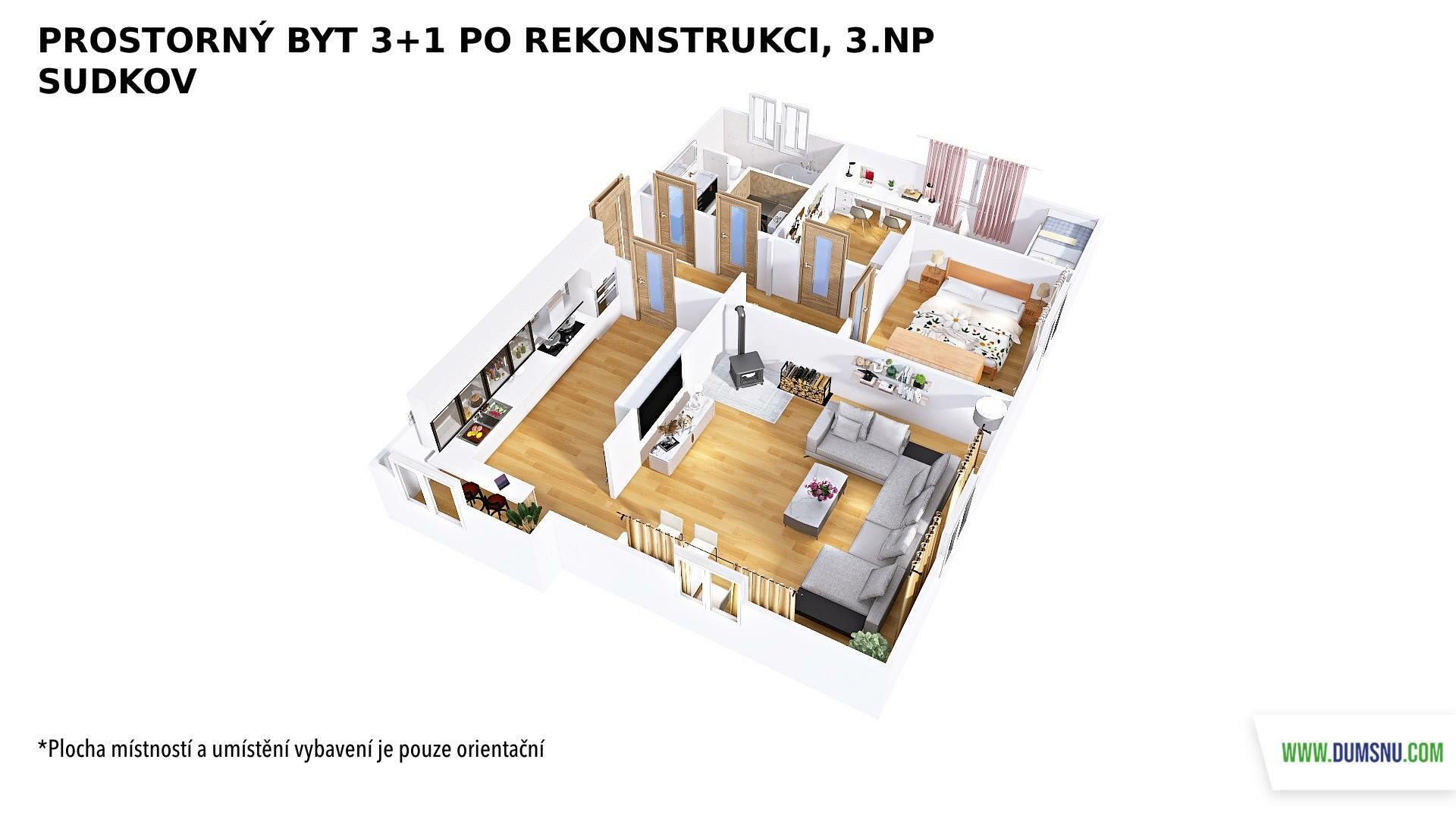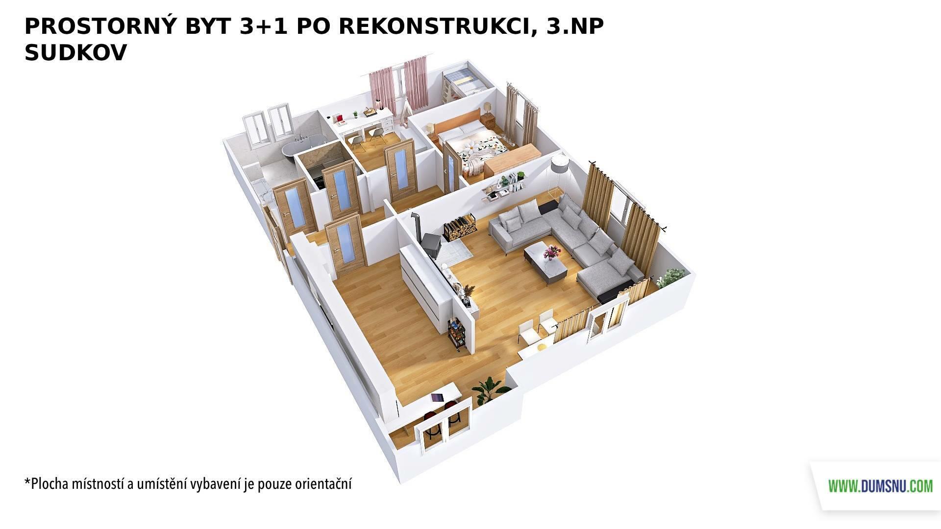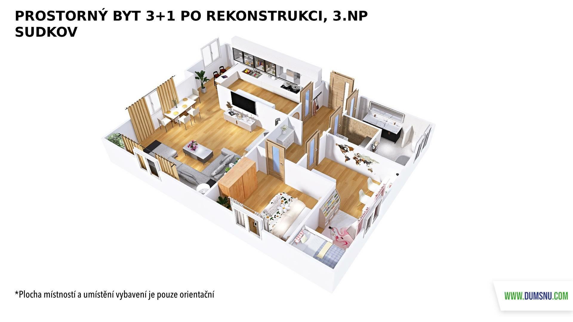 Hledáte klidné bydlení s dostatkem prostoru, soukromí a příjemným venkovním zázemím? Exkluzivně nabízíme k prodeji prostorný byt o dispozici 3+1 v osobním vlastnictví, který se nachází ve zděném bytovém domě ve vyhledávané lokalitě obce Sudkov.