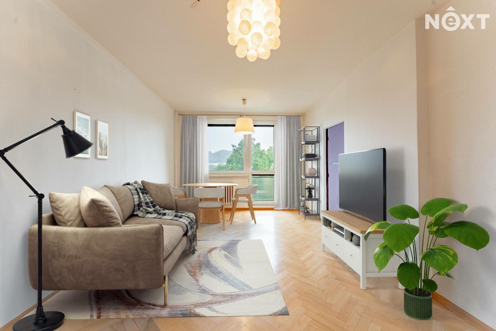 Dispozice bytu poskytuje dostatek prostoru i pro početnější rodinu. Součástí je kuchyň na míru s vestavěnými spotřebiči, světlý obývací pokoj, dvě ložnice, komora, nová koupelna se sprchovým koutem a samostatná toaleta.