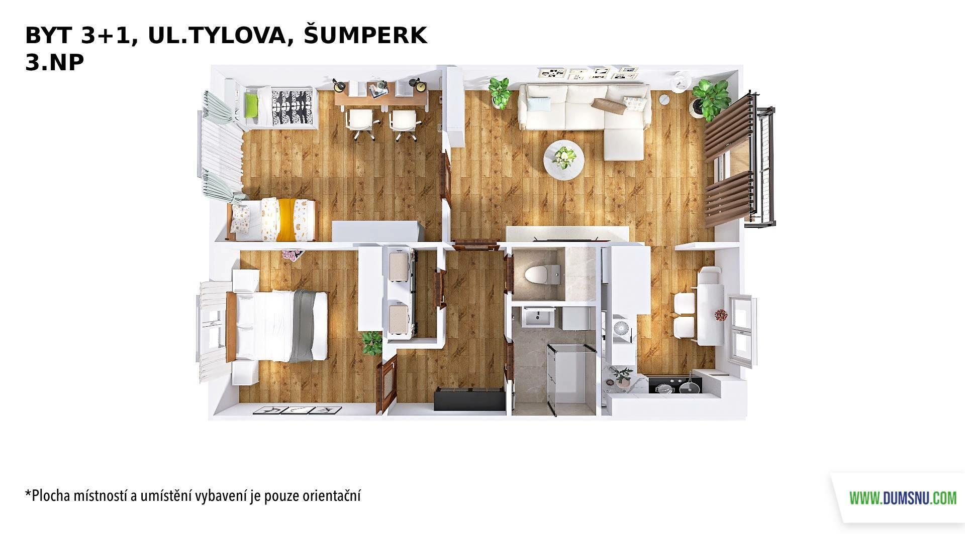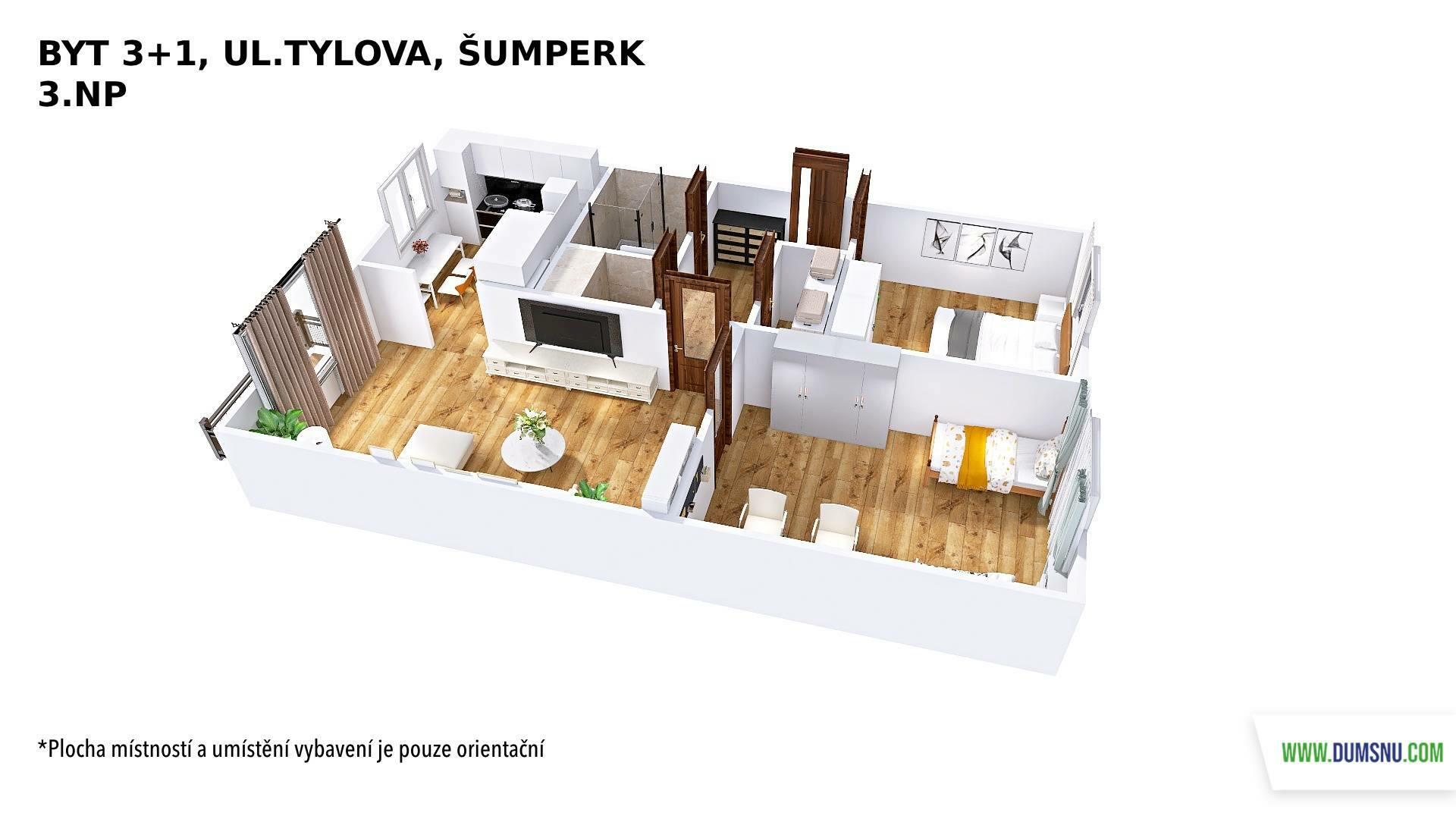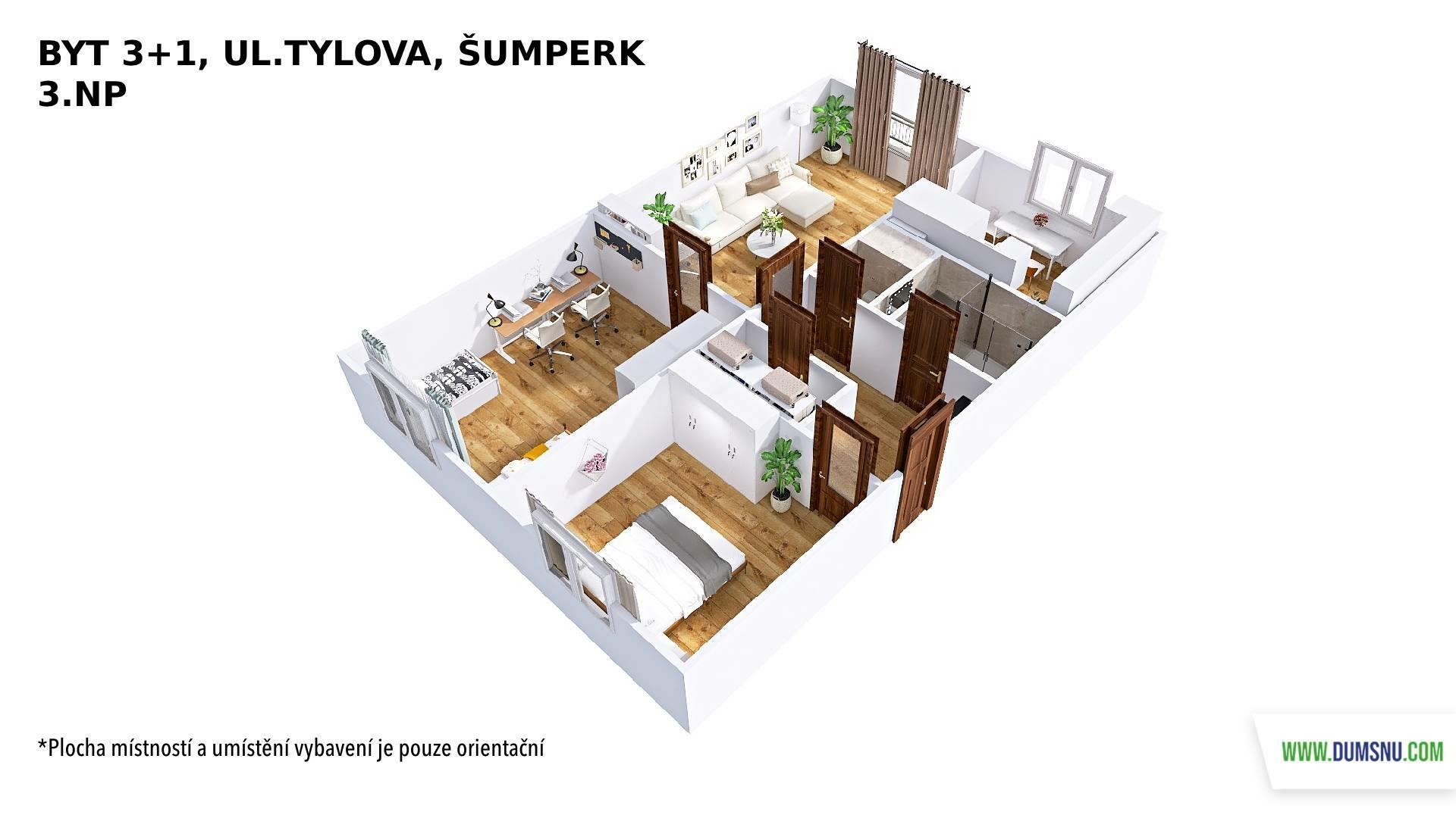 Hledáte bydlení s praktickou dispozicí v klidné části Šumperka ? Přesně takový byt na vás čeká na ulici Tylova v Šumperku.