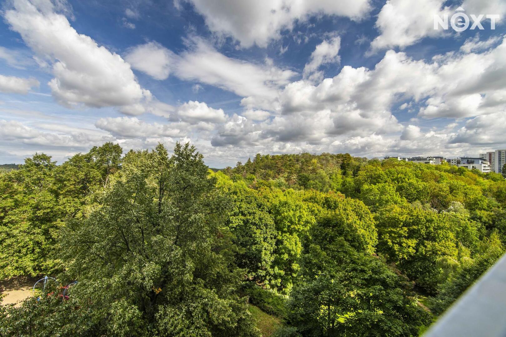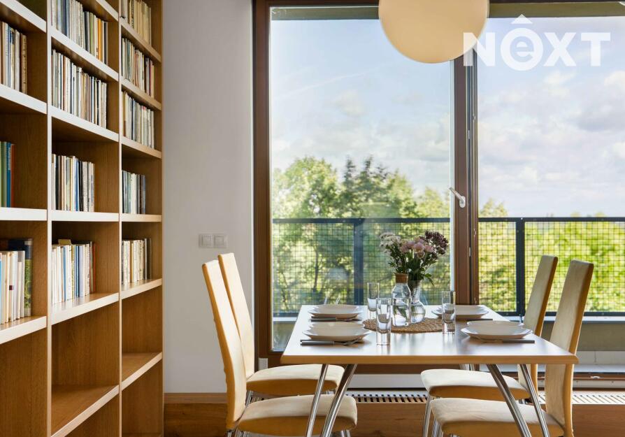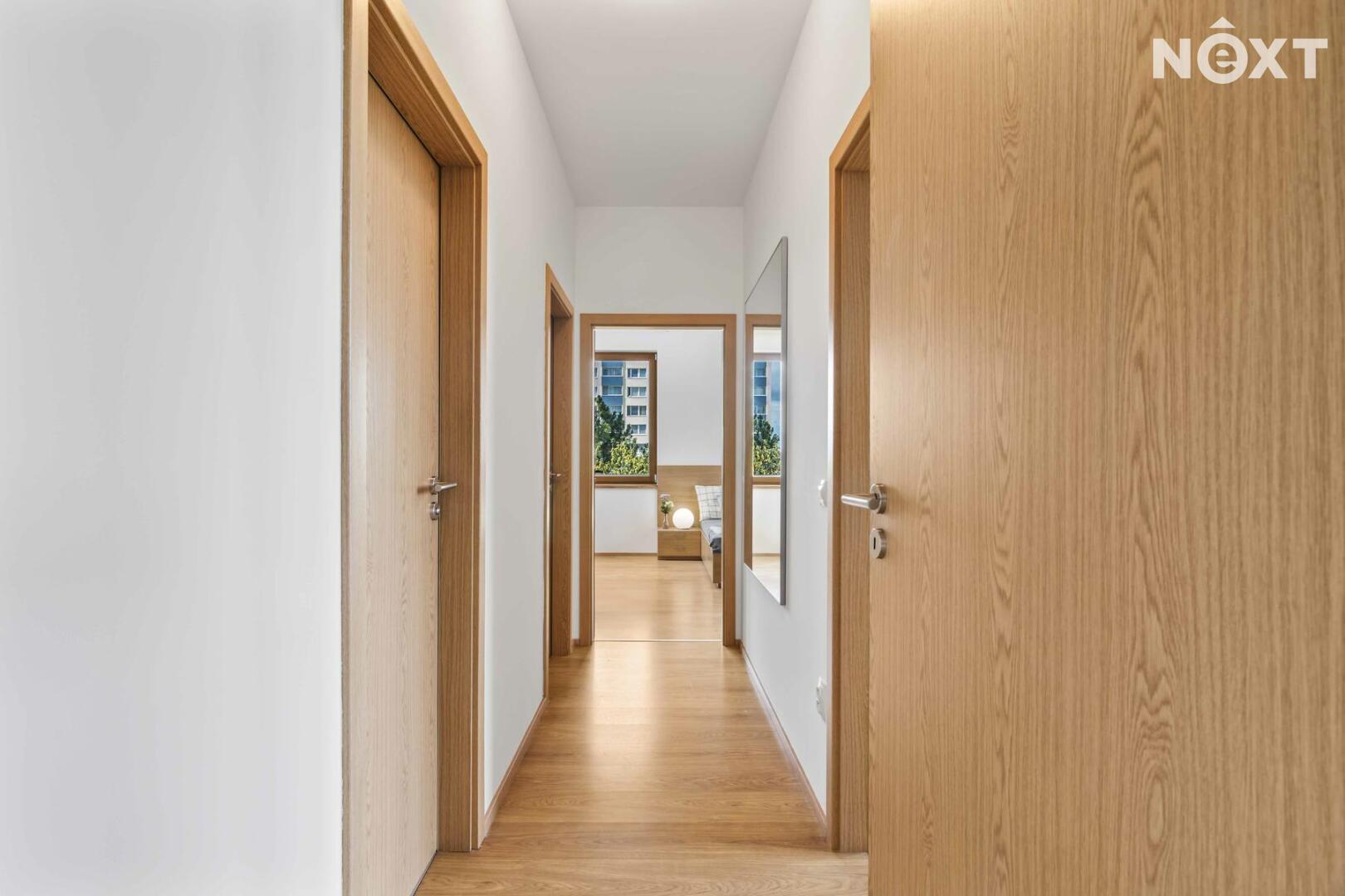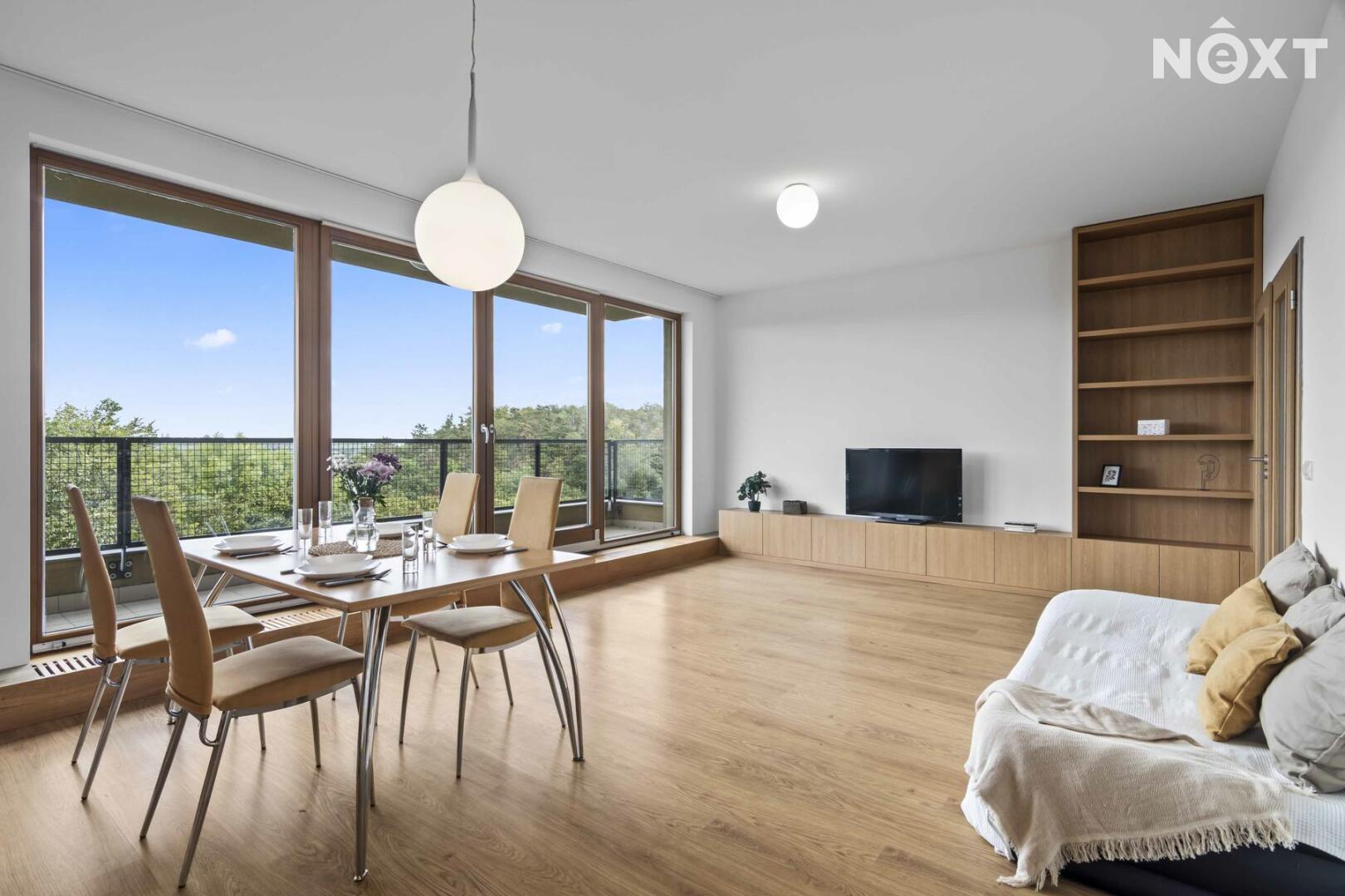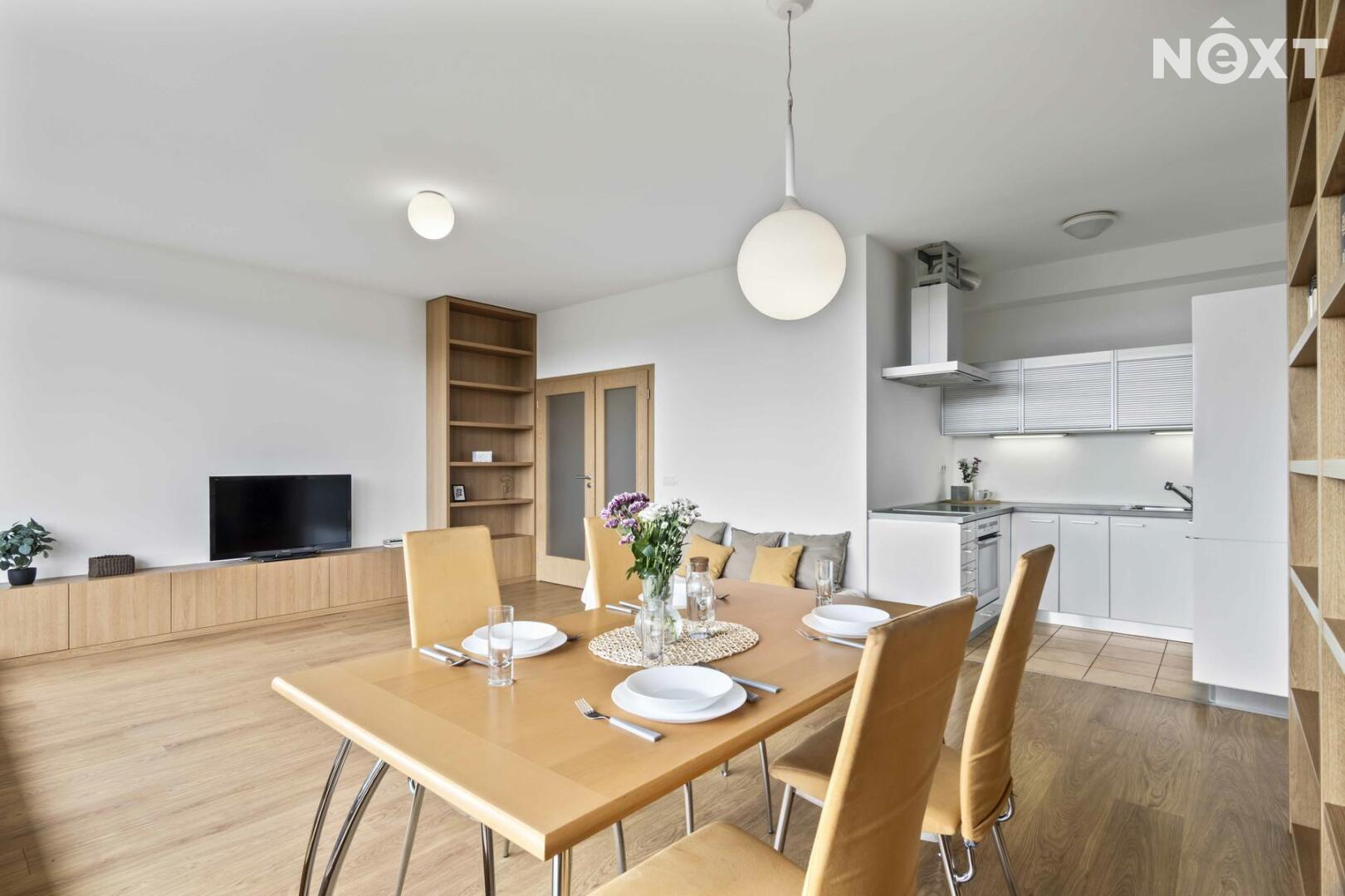 Obývací pokoj s francouzskými okny navazuje na kuchyň a jídelní kout. Díky přímému vstupu na prostorný balkon je to místo, kde si užijete ranní kávu i večerní klid s výhledem do zeleně. Dvě neprůchozí ložnice poskytují soukromí každému členovi rodiny. Praktické řešení doplňuje samostatná toaleta, šatna i vestavěné knihovny na míru, které dodávají interiéru útulnost a funkčnost.