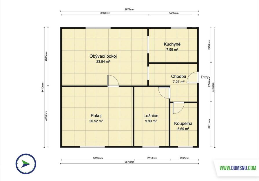 Vstupními dveřmi vejdete do chodby, ve které se nachází velká vestavěná skříň a vlastní plynový kotel. Z chodby se dostanete do krásné světlé koupelny s umyvadlem, toaletou a sprchovým koutem a také do pěkné ložnice. Dalším vstupem z chodby se dostanete do prostorného obývacího pokoje, kde najdete šikovně oddělenou kuchyňskou linku. Dále se odtud dostanete do dalšího, světlého, neprůchozího pokoje.