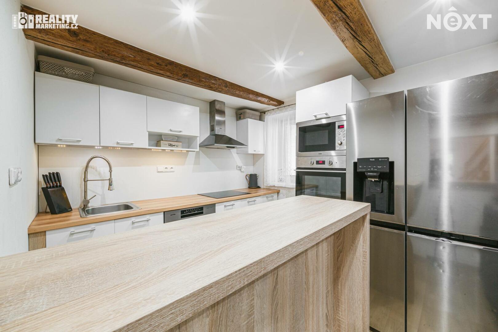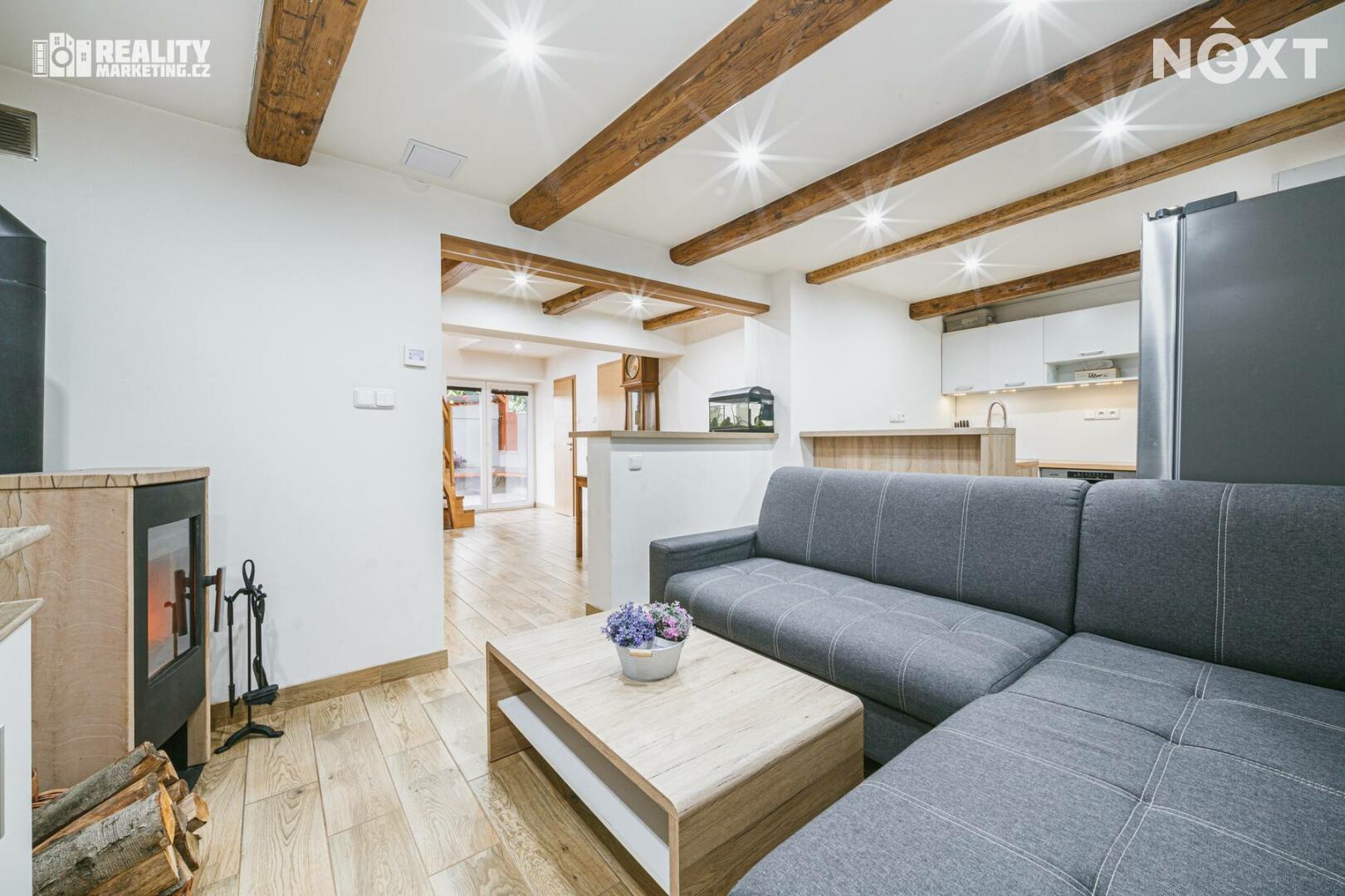 K vytápění domu slouží elektrické podlahové vytápění v kombinaci s přímotopy, v obývacím pokoji jsou pak krbová kamna, která Vám mohou zpříjemnit atmosféru nejen v chladnějších měsících. Ohřev vody zajišťuje elektrický bojler. Z vybavení kromě zmíněných krbových kamen zůstává kuchyňská linka se značkovými spotřebiči – indukční varná deska, digestoř, pečící trouba, mikrovlnná trouba, myčka.