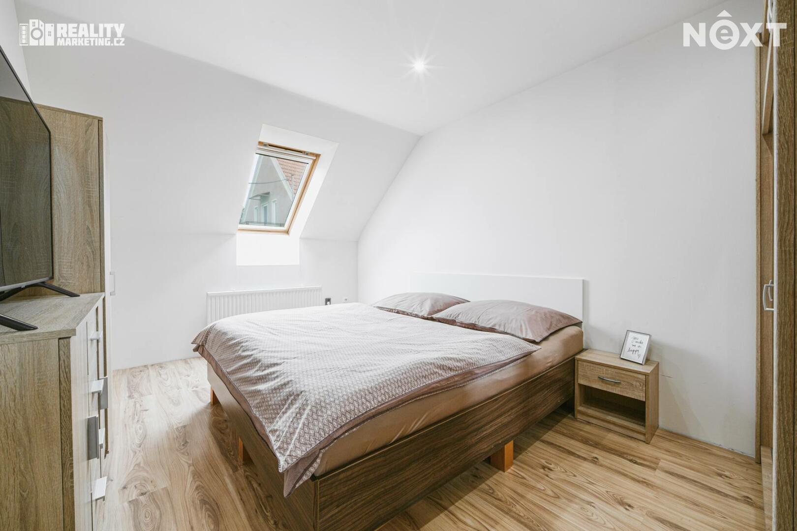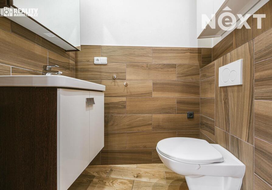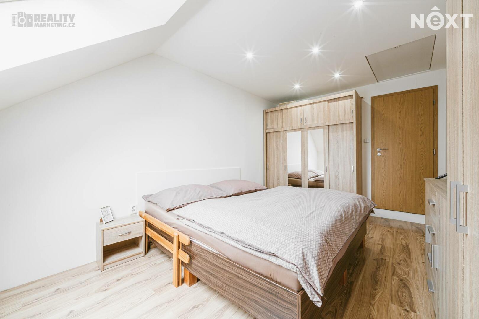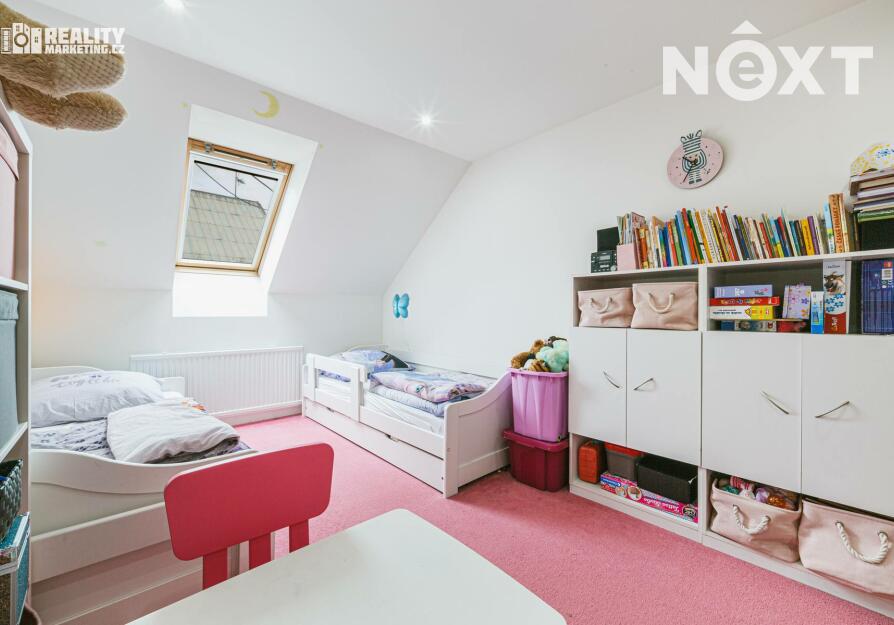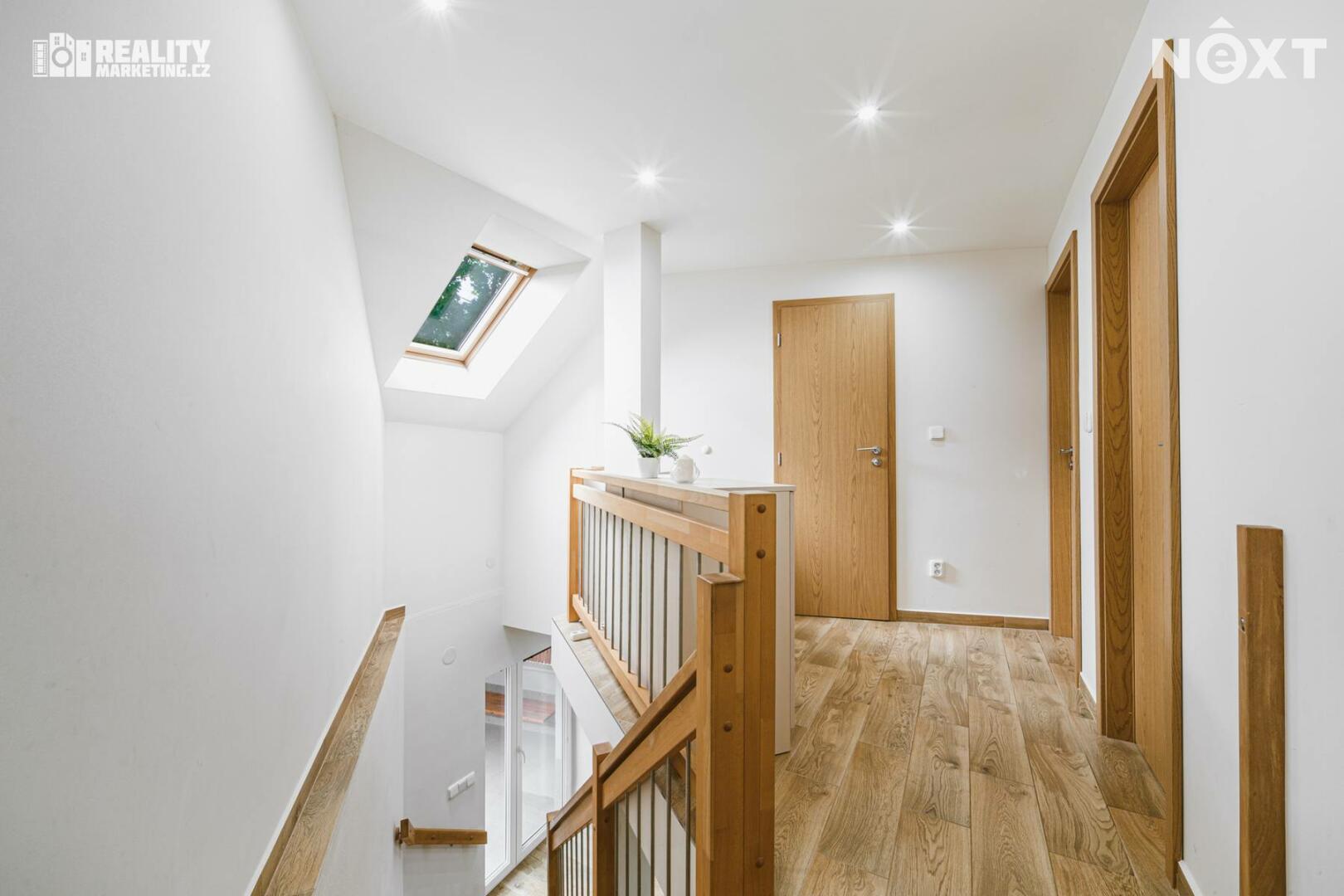 V 1. patře jsou k dispozici 2 obytné pokoje a koupelna vybavena sprchovým koutem a WC.
