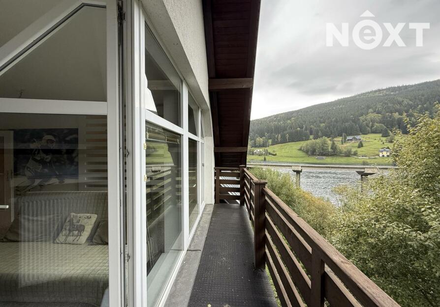 Dispozice bytu: vstupní chodba s oddělenou komorou, obývací pokoj s kuchyňským koutem vybavený vestavěnými spotřebiči, z obývacího pokoje výstup na balkón směrem k přehradě, oddělené spaní s palandou, koupelna se sprchovým koutem vč. wc, byt je kompletně vybaven.