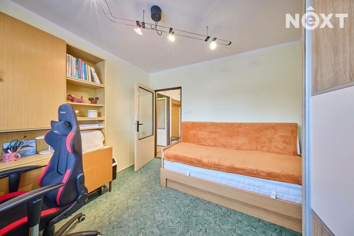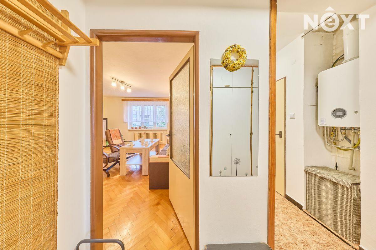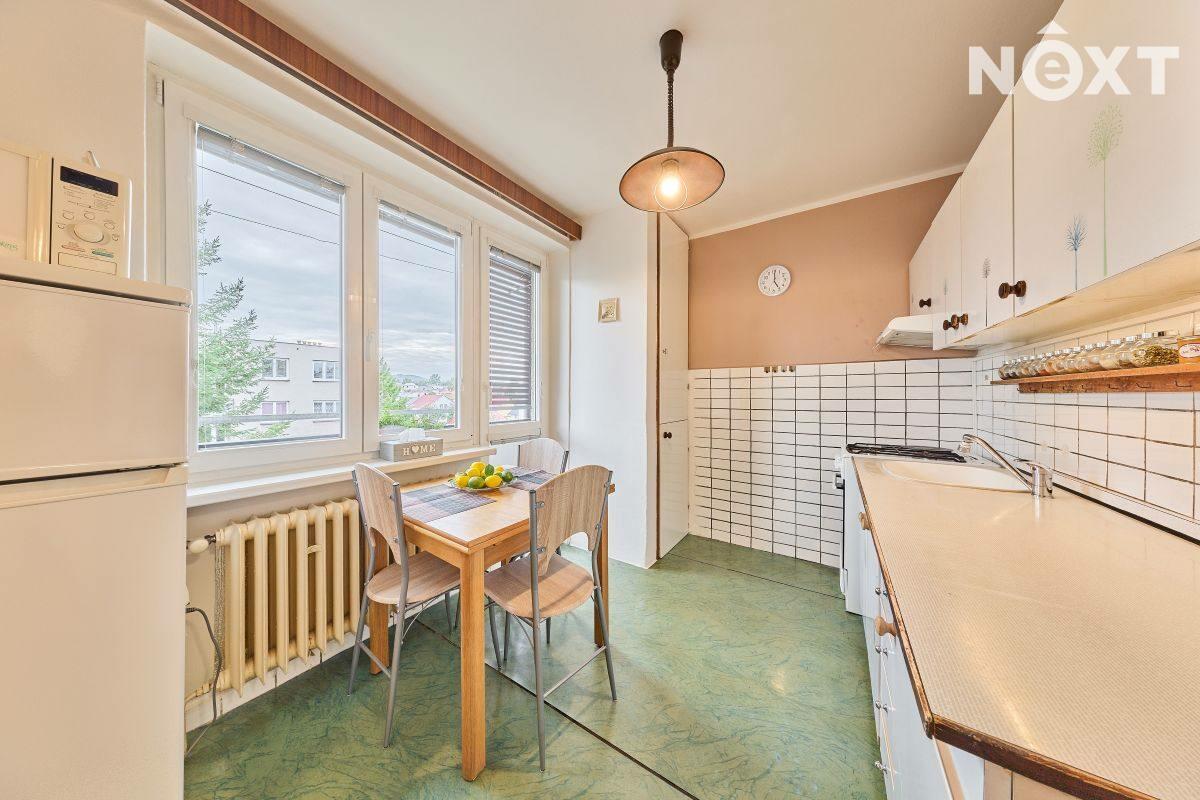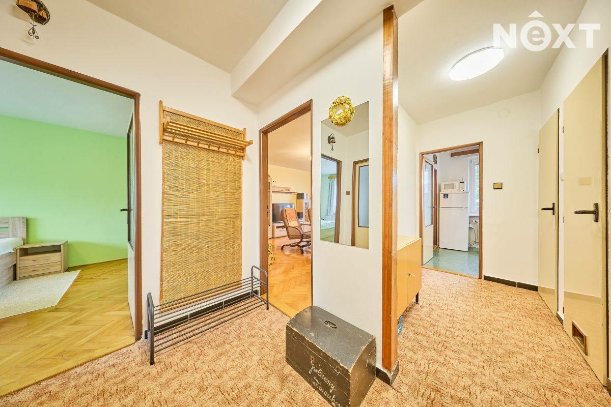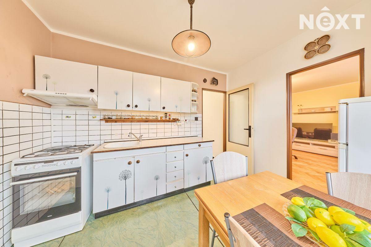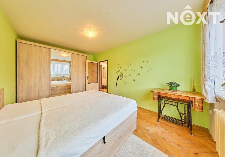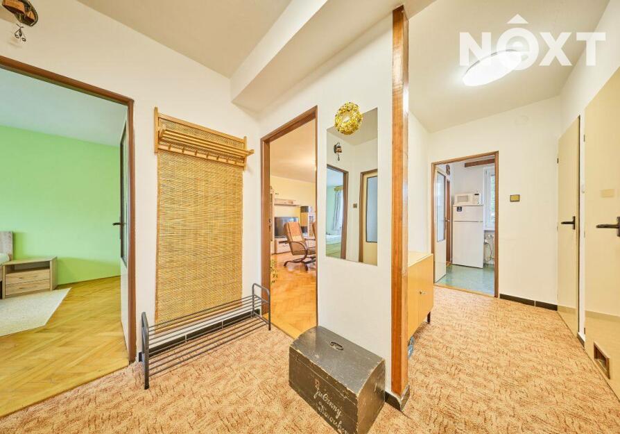 Dispozice: vstupní chodba, kuchyň s výstupem do lodžie, dětský pokoj, ložnice, koupelna a samostatné WC. K bytu dále přísluší velký sklep (cca 7 m2). Vytápění bytu a ohřev vody zajišťuje kondenzační plynový kotel, voda a kanalizace je obecní. Tato kombinace zaručuje novému majiteli nízké náklady na bydlení. Byt je ve velmi dobrém stavu, nabízí se zde rekonstrukční úpravy umožňující propojení kuchyně s obývacím pokojem. Dům prošel rekonstrukcí střechy a stoupaček a je ve velmi dobrém technickém stavu. Bezproblémové parkování přímo před domem. Byt je ihned volný k předání novému majiteli. Pro komunikaci uvádějte evidenční číslo zakázky N114238.
