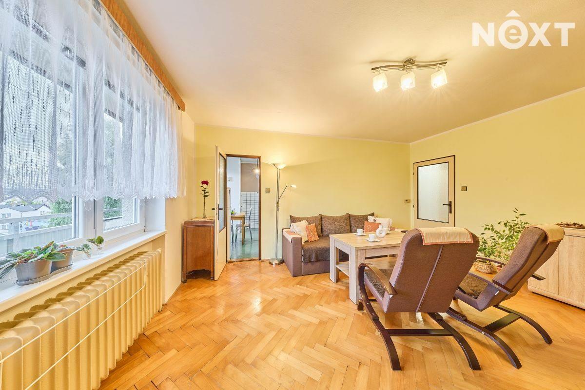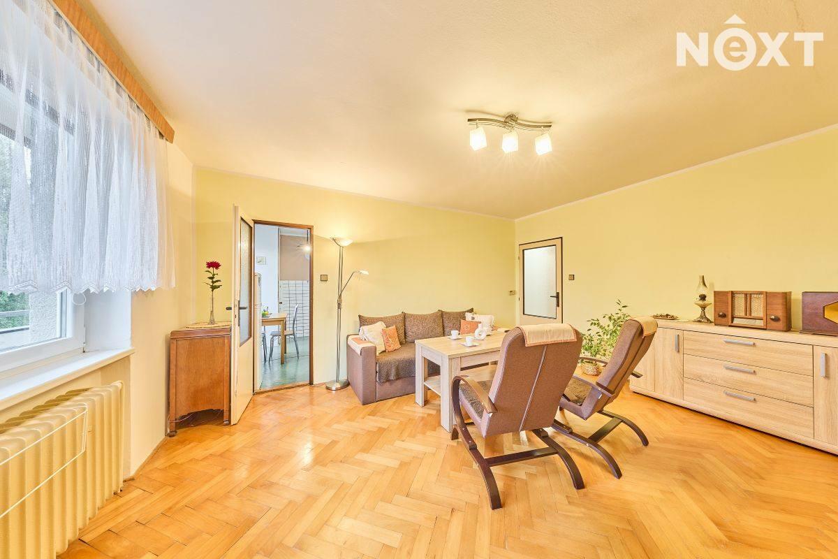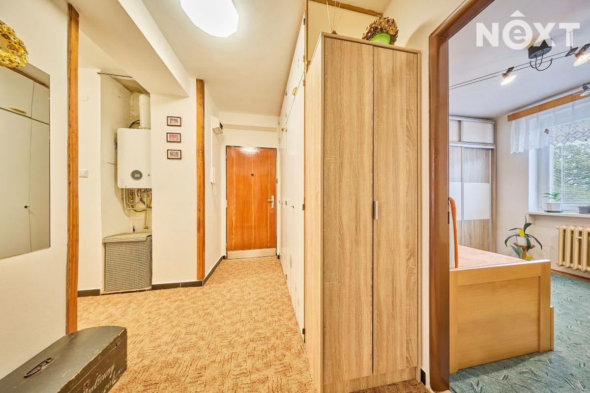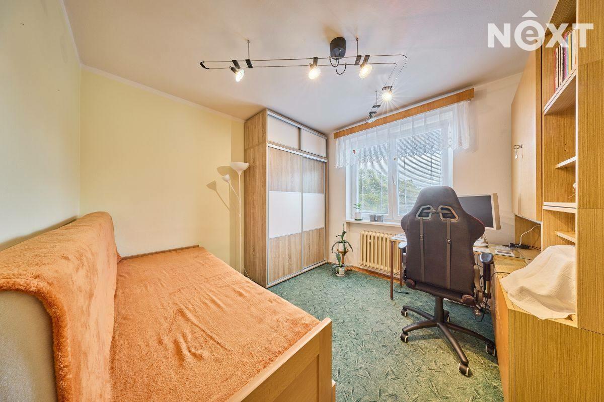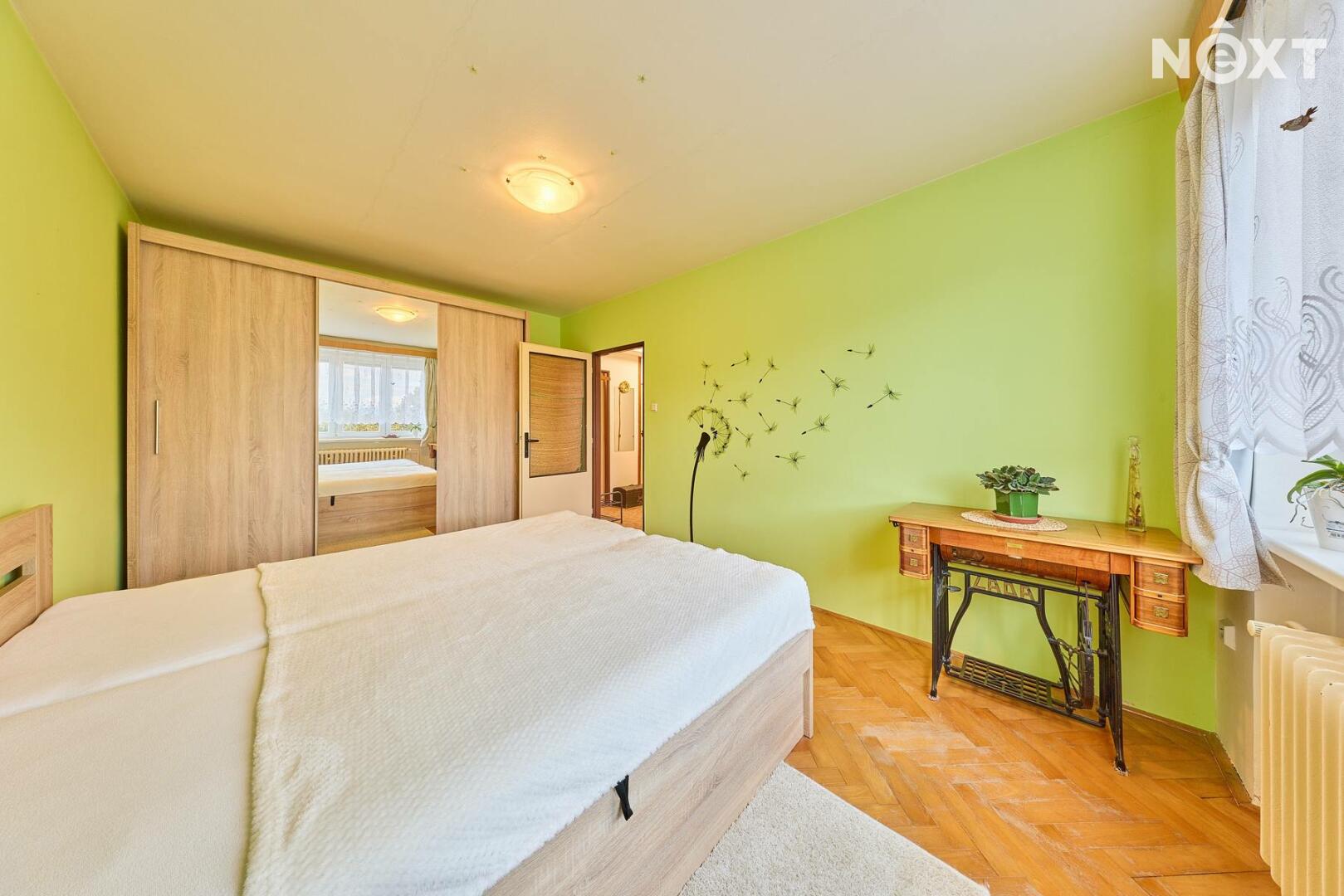 Dispozice: vstupní chodba, kuchyň s výstupem do lodžie, dětský pokoj, ložnice, koupelna a samostatné WC. K bytu dále přísluší velký sklep (cca 7 m2). Vytápění bytu a ohřev vody zajišťuje kondenzační plynový kotel, voda a kanalizace je obecní. Tato kombinace zaručuje novému majiteli nízké náklady na bydlení. Byt je ve velmi dobrém stavu, nabízí se zde rekonstrukční úpravy umožňující propojení kuchyně s obývacím pokojem. Dům prošel rekonstrukcí střechy a stoupaček a je ve velmi dobrém technickém stavu. Bezproblémové parkování přímo před domem. Byt je ihned volný k předání novému majiteli. Pro komunikaci uvádějte evidenční číslo zakázky N114238.