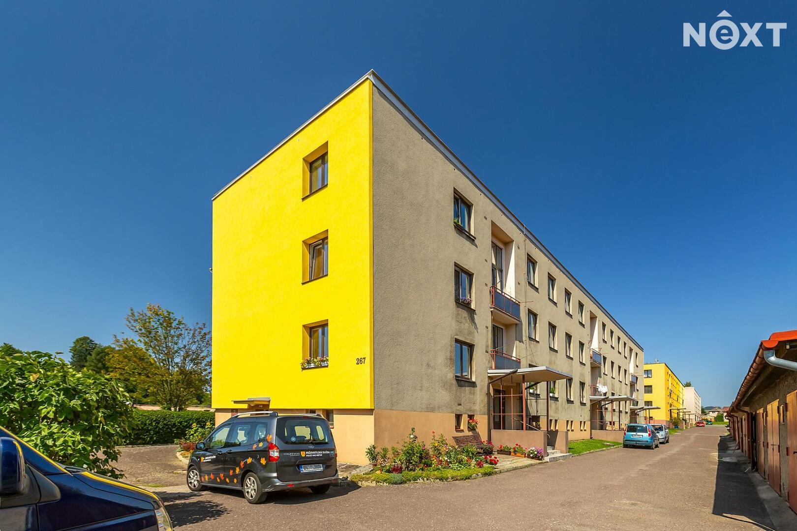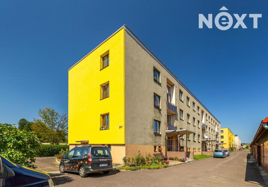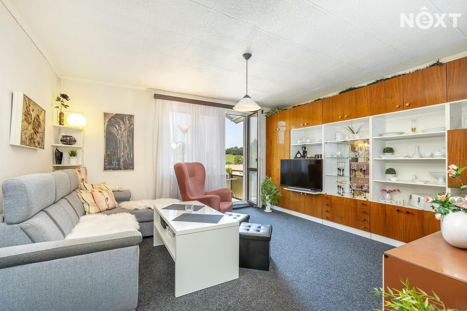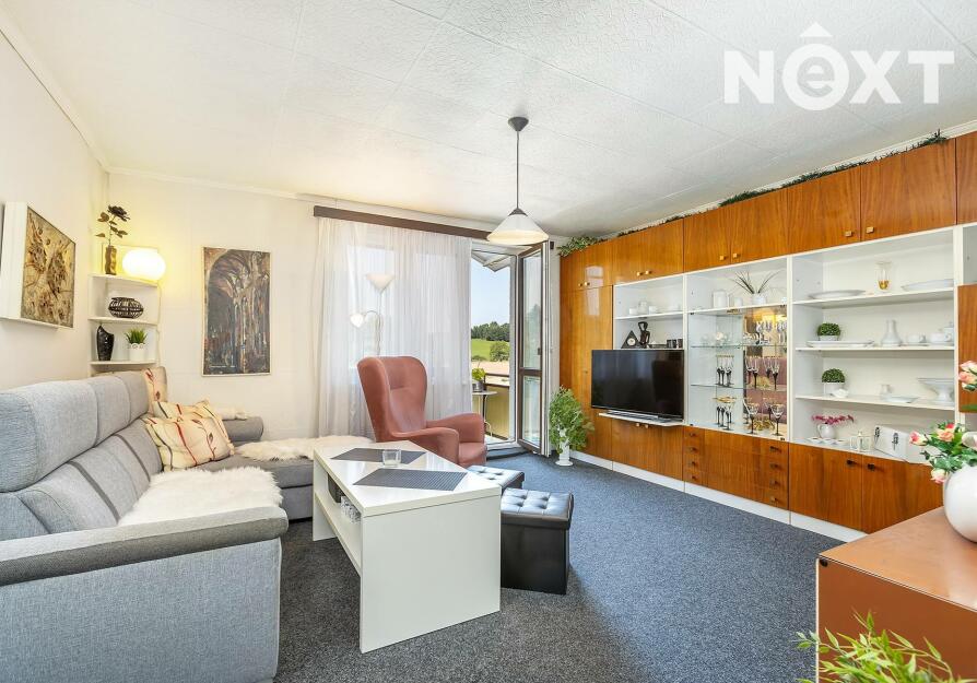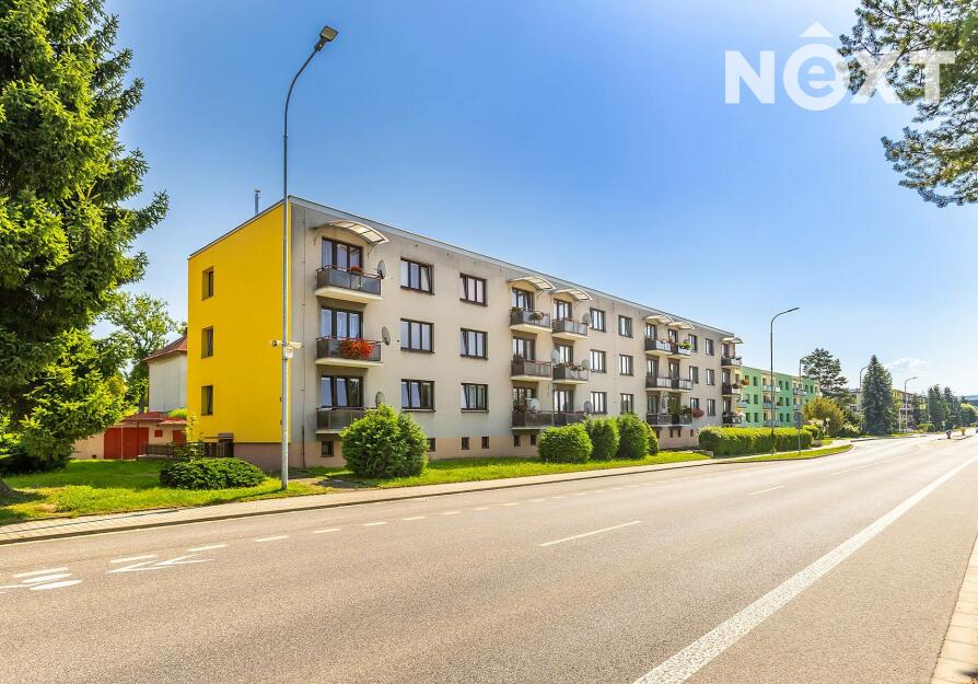 Dispozice bytu je praktická a funkční – obývací pokoj s přímým vstupem na balkón, samostatná kuchyně s oknem a spíží, dvě ložnice, koupelna se sprchovým koutem a samostatná toaleta. K bytu náleží dvě sklepní kóje. Bytový dům je zděný, udržovaný a jeho okolí tvoří zeleň s možností parkování přímo před domem.